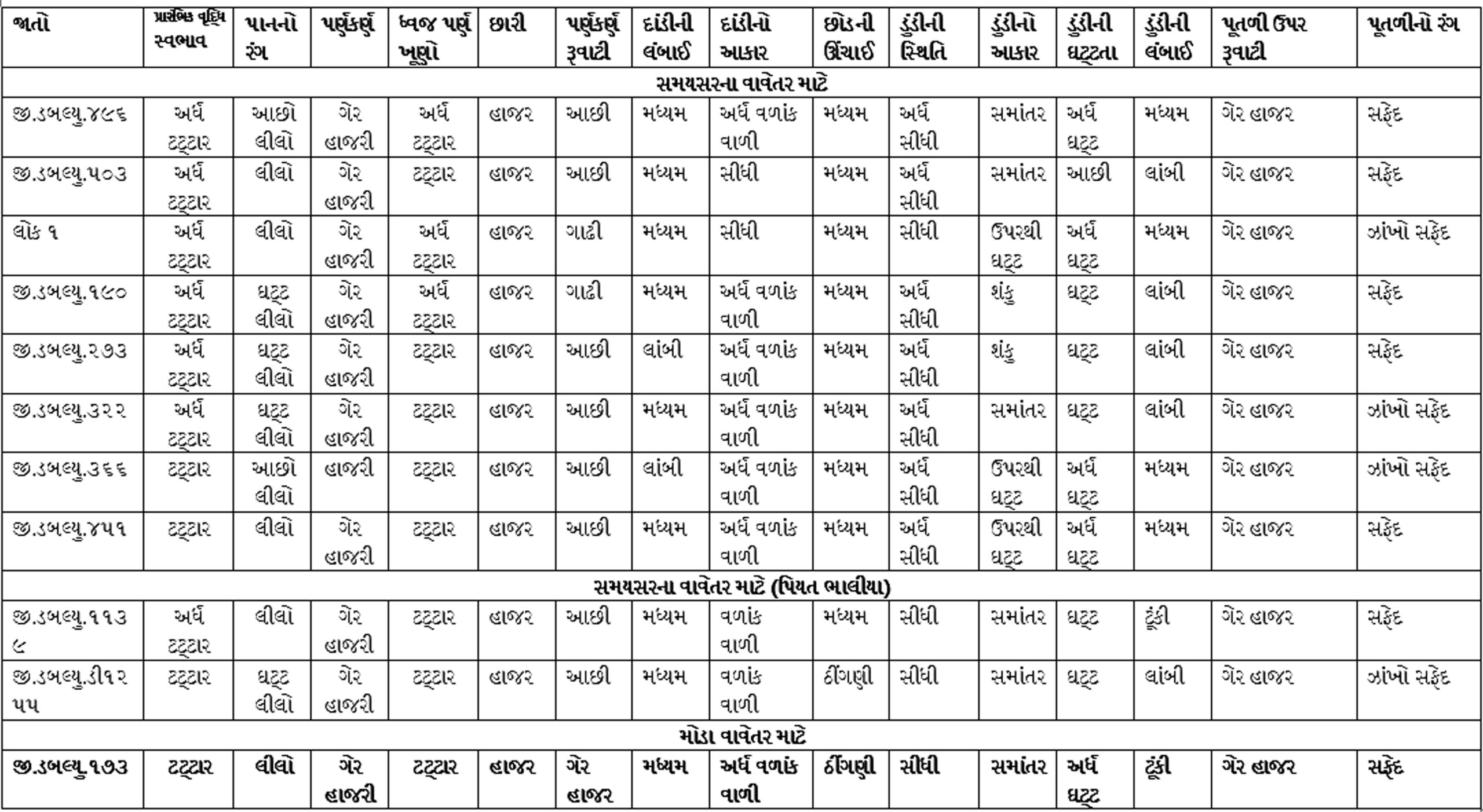 વિવિધ જાતોની ઓળખ માટે અગત્યના લક્ષણો અને પ્રકાર