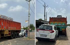 અમદાવાદ-ઇન્દોર હાઇવે પર કાનભાના ચંદિયાલ ગામ નજીક ઇન્દોરથી અમદાવાદ જતી એક કાર ફૂલ સ્પિડમાં ત્યાં ઊભેલી ટ્રક સાથે અથડાઈ હતી. પહેલી જૂને સર્જાયેલા આ અકસ્માતમાં કારમાં પાછળ બેઠેલા એક યુવકનું મોત નિપજ્યું હતું અને અન્ય ત્રણ ઈજાગ્રસ્ત થયા હતાં. મળતી માહિતી મુજબ, આ યુવકો એક આઇસ્ક્રીમ પાર્લરના ઉદ્ઘાટનમાં હાજરી આપવા અમદાવાદ જતા હતા.