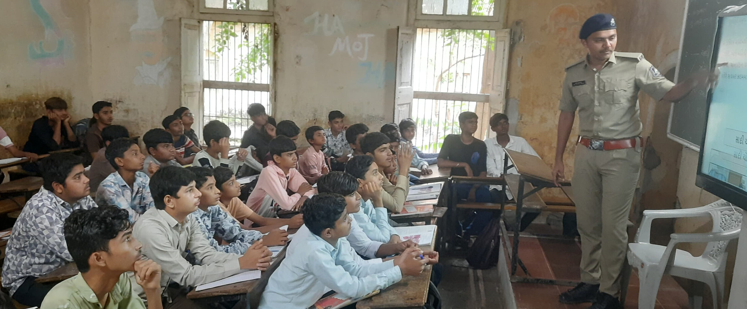 સાયબર ક્રાઈમ પોલીસ સ્ટેશન, અમરેલી દ્વારા કે.કે. પારેખ અને આર.પી. મહેતા વિદ્યાલય, અમરેલી ખાતે સાયબર જાગૃતિ કાર્યક્રમનું આયોજન કરવામાં આવ્યું હતુ. હેડ કોન્સ્ટેબલ નૈતિકભાઈ બાબરીયા અને પોલીસ કોન્સ્ટેબલ સમીરભાઈ ખાન દ્વારા વિદ્યાર્થીઓને સાયબર લગત માહિતી આપતી પત્રિકાઓનું વિતરણ કરવામાં આવ્યું હતું. આ કાર્યક્રમનો મુખ્ય હેતુ લોકો સાથે થતા વિવિધ પ્રકારના સાયબર ફ્રોડ, જેમ કે સ્ક્રીન શેરિંગ એપ OTP ફ્રોડ, કસ્ટમર કેર નંબર ફ્રોડ, શિપિંગ શુલ્ક, ન્યુડ વીડિયો કોલ અને આર્મીમેનનું નામ ધારણ કરીને થતી છેતરપિંડી અંગે