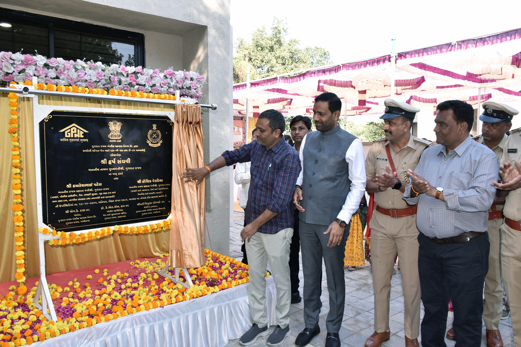 અમરેલી સ્થિત તારવાડી ખાતે ઓપન જેલ કેમ્પસમાં ગુજરાત રાજ્ય પોલીસ આવાસ નિગમ લી. દ્વારા કુલ રૂ.૧ કરોડ ૮૨ લાખથી વધુના ખર્ચે પોલીસ જવાનો માટે રહેણાંક હેતુસર અદ્યતન આવાસ બિલ્ડિંગનું નિર્માણ કરવામાં આવ્યું છે. રાજ્યના ઉર્જા, કાયદો અને ન્યાય, વૈધાનિક અને સંસદીય બાબતોના રાજ્યમંત્રી કૌશિકભાઈ વેકરીયાના હસ્તે કક્ષા બી-૦૭ અને ડી-૦૧ નવનિર્મિત આવાસોનું લોકાર્પણ કરવામાં આવ્યું હતું. પોલીસ જવાનોના પરિવારજનો માટે સુવિધાયુક્ત સાથે સુરક્ષિત ઘર મહત્વનું છે. પોલીસ જવાનો પોતાના વતનથી દૂર ફરજ પર હોય છે ત્યારે તેમને રહેણાંકની ઉત્તમ સગવડ પ્રાપ્ત થાય તે માટે ગુજરાત રાજ્ય પોલીસ આવાસ નિગમ લી. સતત કાર્યરત છે. રાજ્યમંત્રી કૌશિકભાઈ વેકરીયાએ ઓપન જેલ ખાતે આવાસ લોકાર્પણ પ્રસંગે જણાવ્યું કે, પોલીસ પરિવારો રાત દિવસ જોયા વિના પોતાની ફરજ નિષ્ઠાપૂર્વક નિભાવે છે. ઉપરાંત તેમનો પરિવાર સુરક્ષિત વાતાવરણ સાથે સુવિધાયુક્ત આવાસમાં રહે તે જરૂરી છે. રાજ્યમંત્રીએ નવનિર્મિત પોલીસ આવાસની મુલાકાત લીધી હતી અને નવા બનેલ આવાસમાં ગૃહપ્રવેશ માટે પોલીસ પરિવારજનોને શુભેચ્છાઓ પાઠવી હતી. અમરેલી ઓપન જેલ ખાતે કક્ષા બી-૦૭ અને ડી-૦૧ નવનિર્મિત આવાસના લોકાર્પણ પ્રસંગે જેલ અધિક્ષક સહિત પોલીસ સ્ટાફ ઉપરાંત પોલીસ પરિવારજનો પણ ઉપસ્થિત રહ્યા હતા.