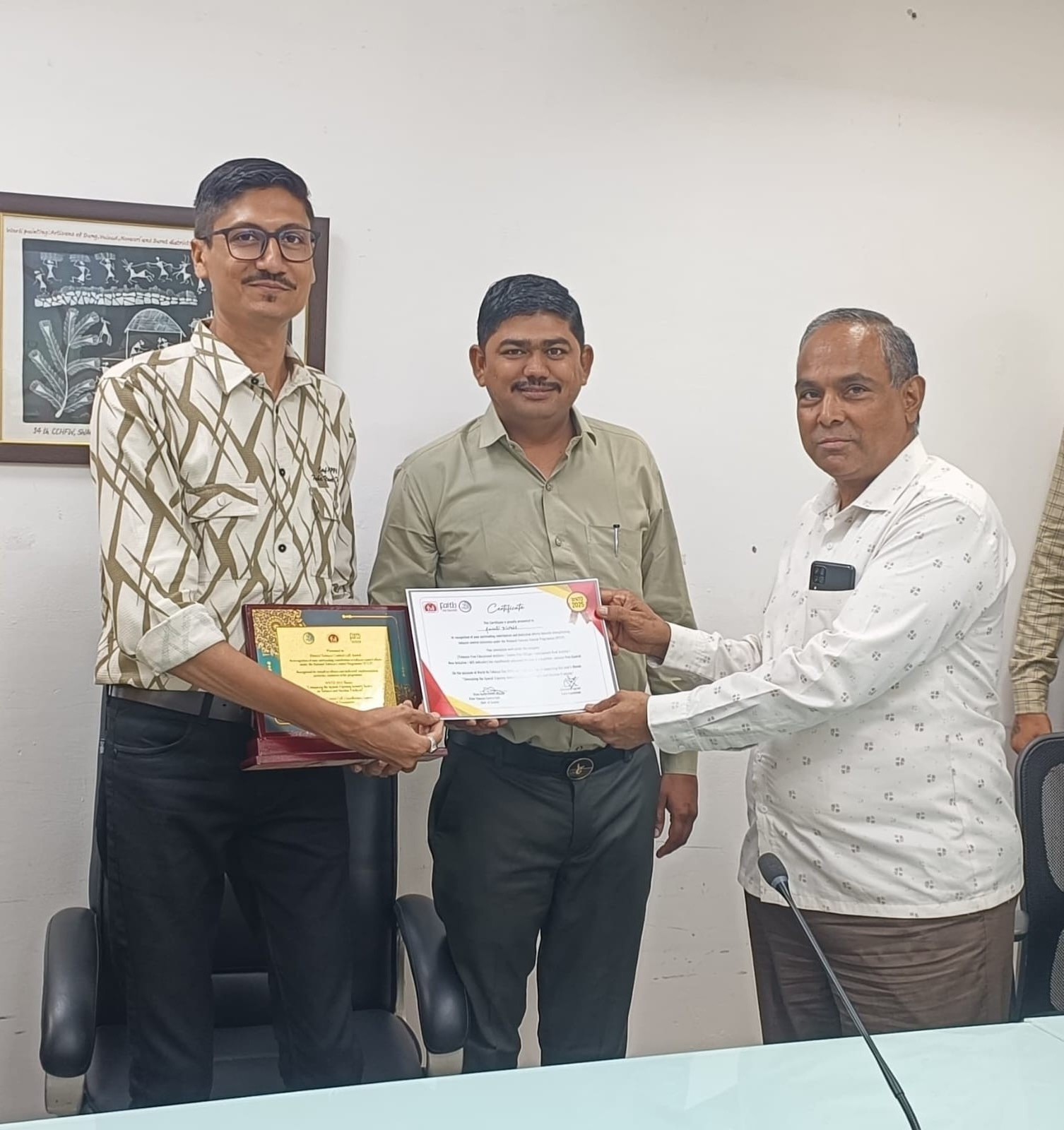 રાષ્ટ્રીય તમાકુ નિયંત્રણ કાર્યક્રમ (NTCP) હેઠળ ૬ જૂનના રોજ ગાંધીનગર ખાતે યોજાયેલ એક દિવસીય વર્કશોપ કમ રિવ્યુ મિટિંગમાં અમરેલી જિલ્લા તમાકુ નિયંત્રણ સેલને ઓવરઓલ એક્સેલન્સ એવોર્ડથી સન્માનિત કરવામાં આવ્યું છે. આ મિટિંગમાં રાજ્યના ૩૩ જિલ્લાના કાઉન્સેલર અને સોશિયલ વર્કરની તમાકુ નિયંત્રણ કામગીરીની સમીક્ષા કરવામાં આવી હતી. અમરેલી જિલ્લામાં તમાકુ નિયંત્રણના પ્રયાસોમાં ઉત્કૃષ્ટ યોગદાન અને કાર્યક્રમના અમલીકરણમાં એકંદર શ્રેષ્ઠતા બદલ અમરેલી જિલ્લાના કાઉન્સેલર રિયાઝભાઈ મોગલ અને સોશિયલ વર્કર નરેશભાઈ જેઠવાને રાજ્યકક્ષાના અધિકારીઓની હાજરીમાં આ એવોર્ડ એનાયત કરવામાં આવ્યો હતો.