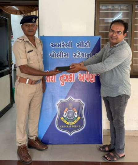 અરજદારોની ગુમ થયેલ મિલકત સત્વરે શોધી પરત કરવાના “તેરા તુજકો અર્પણ” કાર્યક્રમને અમરેલી સીટી પોલીસે સફળ બનાવ્યો છે. અમરેલી પોલીસે એક અરજદારનો ગુમ થયેલ કિંમતી મોબાઈલ ફોન શોધી કાઢી તેમને પરત સોંપ્યો છે. ઘટનાની વિગત મુજબ, અમરેલીના રહેવાસી અરજદાર અરવિંદભાઇ વાસમજીભાઇ નાગ્રેચા ગત તા. ૦૬/૦૬/૨૦૨૫ ના રોજ લાઠી રોડથી અમરેલી સીવીલ હોસ્પીટલ ખાતે ગયા હતા, તે દરમિયાન તેમનો મોબાઈલ ફોન ક્યાંક ગુમ થઈ ગયો હતો. આ અંગે અરજદારે અમરેલી સીટી પોલીસ સ્ટેશનમાં અરજી આપી હતી. અમરેલી સીટી પોલીસ સ્ટેશનના પોલીસ ઇન્સ્પેક્ટર ડી.કે. વાઘેલાના માર્ગદર્શન હેઠળ સર્વેલન્સ ટીમ દ્વારા હ્યુમન સોર્સની મદદથી તપાસ હાથ ધરવામાં આવી હતી. તપાસના અંતે ગુમ થયેલ ફોન, જેની કિંમત રૂ.૧૪,૫૦૦/- છે, તેને શોધી કાઢવામાં આવ્યો હતો. પોલીસે આ મોબાઈલ ફોન મૂળ માલિક અરવિંદભાઇને