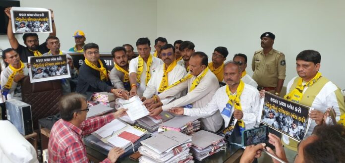 અમરેલી જિલ્લામાં આમ આદમી પાર્ટી દ્વારા ખેડૂતોના હિતમાં રાજ્યપાલને સંબોધી કલેકટર હસ્તક આવેદન પત્ર આપવામાં આવ્યું હતું. બોટાદ જિલ્લામાં ખરીદી બાદ ખેડૂતો સાથે થતાં “કડદા”ના ગંભીર મામલે સરકારના મૌનના વિરોધમાં આંદોલન શરૂ થયું છે. પાર્ટીએ કડદા પ્રથા તાત્કાલિક બંધ કરવા, વેપારીઓના લાયસન્સ રદ કરવાની લેખિત બાંહેધરી, નિર્દોષ ખેડૂતો પર થયેલા હુમલાની તપાસ અને ખોટા કેસ પાછા ખેંચવાની માગણી કરી છે. જો સરકાર તાત્કાલિક પગલાં નહીં ભરે તો ગુજરાત વ્યાપી આંદોલન કરવાનો ચેતાવણીભર્યો ઇશારો પણ આપવામાં આવ્યો. જિલ્લા પ્રમુખ નિકુંજ સાવલિયા, કાંતિભાઈ સતાસિયા, હિરેનભાઈ વિરડીયા, જયદીપભાઇ પાંચાણી, વિજયભાઈ ડોબરીયા, નિલેશભાઈ વામજા, ધર્મેશભાઈ કાનપરિયા, ઘનશ્યામભાઈ દેસાણી, વિરેન્દ્રભાઈ વાઘેલા, વિપુલભાઈ ડાંગર, કિશોરભાઈ પાનસેરીયા, વિપુલભાઈ વિરાણી, જગદીશભાઈ શિરોયા, મહમદભાઈ જાદવ, હિતેશભાઈ દોંગા વગેરે ઉપસ્થિત રહ્યા હતા.