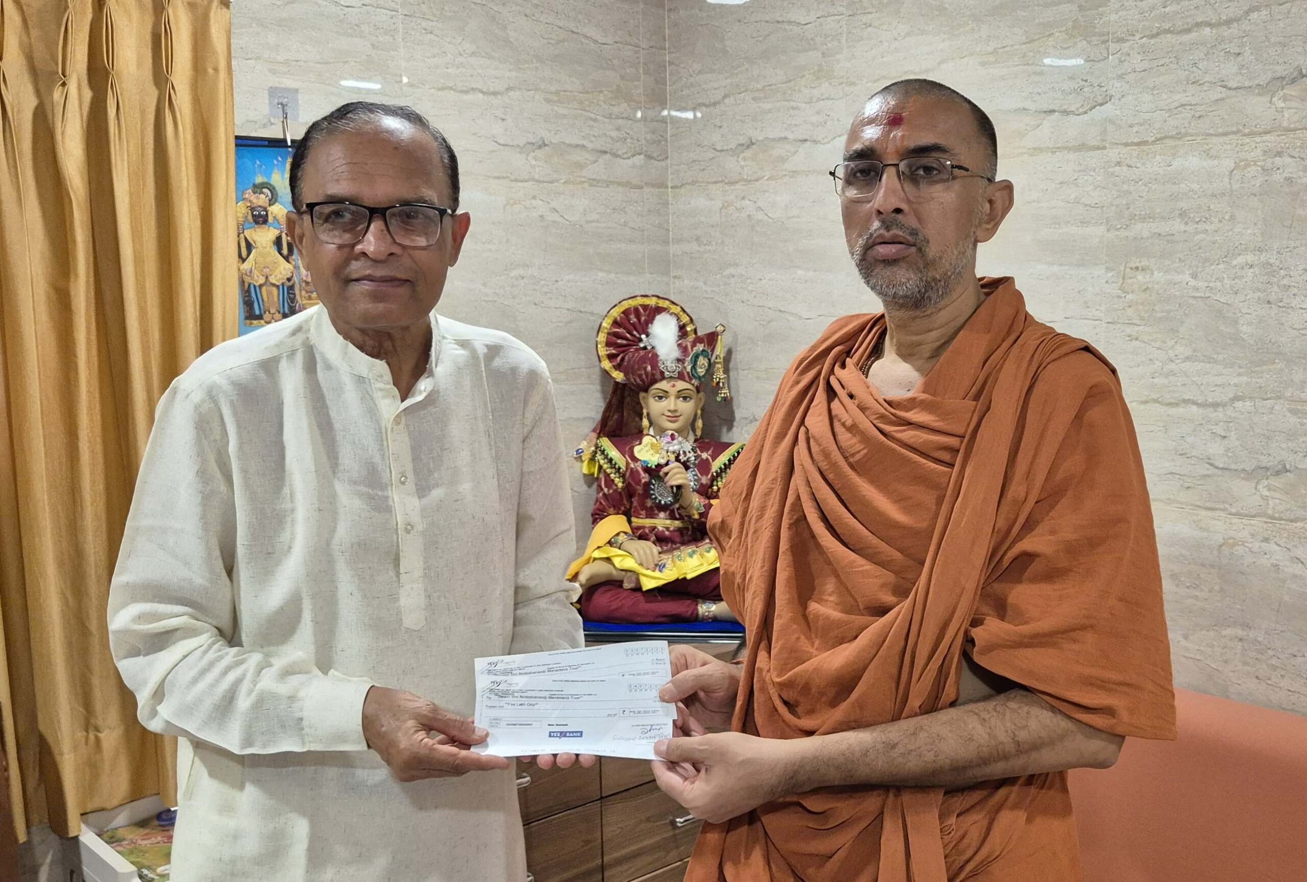 બોટાદ જિલ્લાના કુંડળ ખાતેના શ્રી સ્વામિનારાયણ મંદિર તીર્થક્ષેત્ર દ્વારા તા.૦૩/૦૭/૨૦૨૫ના રોજ સંસ્થાપક પ.પૂ. ગુરુવર્ય શ્રી જ્ઞાનજીવનદાસ સ્વામીજીની આજ્ઞાથી તેમના અનુગામી પૂજય શ્રી ઈશ્વરચરણદાસ સ્વામીજીનાં હસ્તે રૂ. ૧૧ લાખના અનુદાનનો ચેક ટીંબીની સ્વામી શ્રી નિર્દોષાનંદજી માનવસેવા હોસ્પિટલનાં વહીવટીકર્તા ટ્રસ્ટી બી.એલ. રાજપરાને અર્પણ કરેલ છે. આ તકે બી.એલ. રાજપરા દ્વારા હોસ્પિટલનાં પ્રણેતા બ્ર.પ.પૂ. સ્વામી શ્રી નિર્દોષાનંદ સરસ્વતીજી મહારાજનાં “જીવન ચરિતામૃત’ ગ્રંથ અને શાલ અર્પણ કરીને ૫.પૂ. જ્ઞાનજીવનદાસ સ્વામીજીની ભાવવંદના કરવામાં આવી હતી.