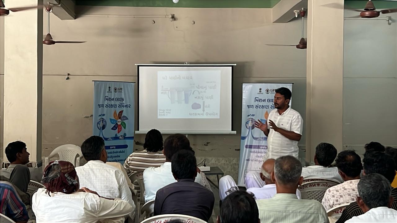 ગીર સોમનાથ જિલ્લાના ગીરગઢડા તાલુકામાં મિશન લાઈફ અભિયાન અંતર્ગત જળ સંરક્ષણ વિષય પર ખેડૂતો માટે એક માહિતીસભર સેમિનારનું આયોજન કરવામાં આવ્યું હતું. આ સેમિનારમાં કુલ ૧૬૦થી વધુ ખેડૂતોએ જળ સંરક્ષણના વિવિધ પગલા વિશે વિસ્તૃતમાં માહિતી મેળવી હતી. સેમિનારમાં મુખ્ય વક્તા ડા. ધવલ વારગીયા અને આકાશ ભટ્ટે ખેડૂતોને જળ સંરક્ષણ અંગે વિસ્તૃત માર્ગદર્શન આપ્યું હતું. સેમિનારમાં વરસાદી પાણીનો સંચય કરીને ભૂગર્ભ જળસ્તર વધારવા, ટપક સિંચાઈ અને ફુવારા પદ્ધતિનો ઉપયોગ કરીને પાણીનો વ્યય અટકાવવો, ઓછા પાણીની ખેતી પદ્ધતિ અપનાવવી, અમૃત સરોવર જેવી યોજનાઓનો ઉપયોગ કરીને ગામસ્તરે પાણી સંચય કરવા જેવી બાબતોથી વાકેફ કરવામાં આવ્યાં હતાં.