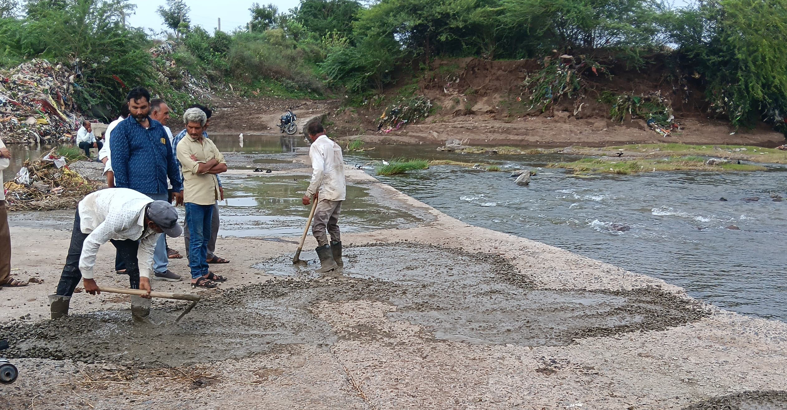 અમરેલી તાલુકાના ચાંપાથળ ગામે શેત્રુંજી નદી પરનો કોઝ-વે અસરગ્રસ્ત થયો હતો. આ કોઝ-વેનું જરુરી મરામત કાર્ય થઇ શકે તે માટે તંત્ર દ્વારા જહેમત ઉઠાવવામાં આવી હતી. વાહનચાલકોને સુગમતા રહે તે માટે આ કોઝ-વેનું કામચલાઉ ધોરણે મરામત કાર્ય આરસીસી મટિરીયલ્સથી કરવામાં આવ્યું હતું. અમરેલી જિલ્લાના માર્ગ અને મકાન પંચાયત હેઠળના ચાંપાથળ સાવરકુંડલા રોડ પરના આ કોઝ-વેની જગ્યાએ મેજર બ્રિજ બનાવવાનું પણ આયોજન માર્ગ અને મકાન પંચાયત તંત્ર દ્વારા હાથ ધરવામાં આવશે. જેથી ચાંપાથળ સહિતના વટેમાર્ગુઓને અવરજવર માટે સુવિધામાં વધારો થશે.
