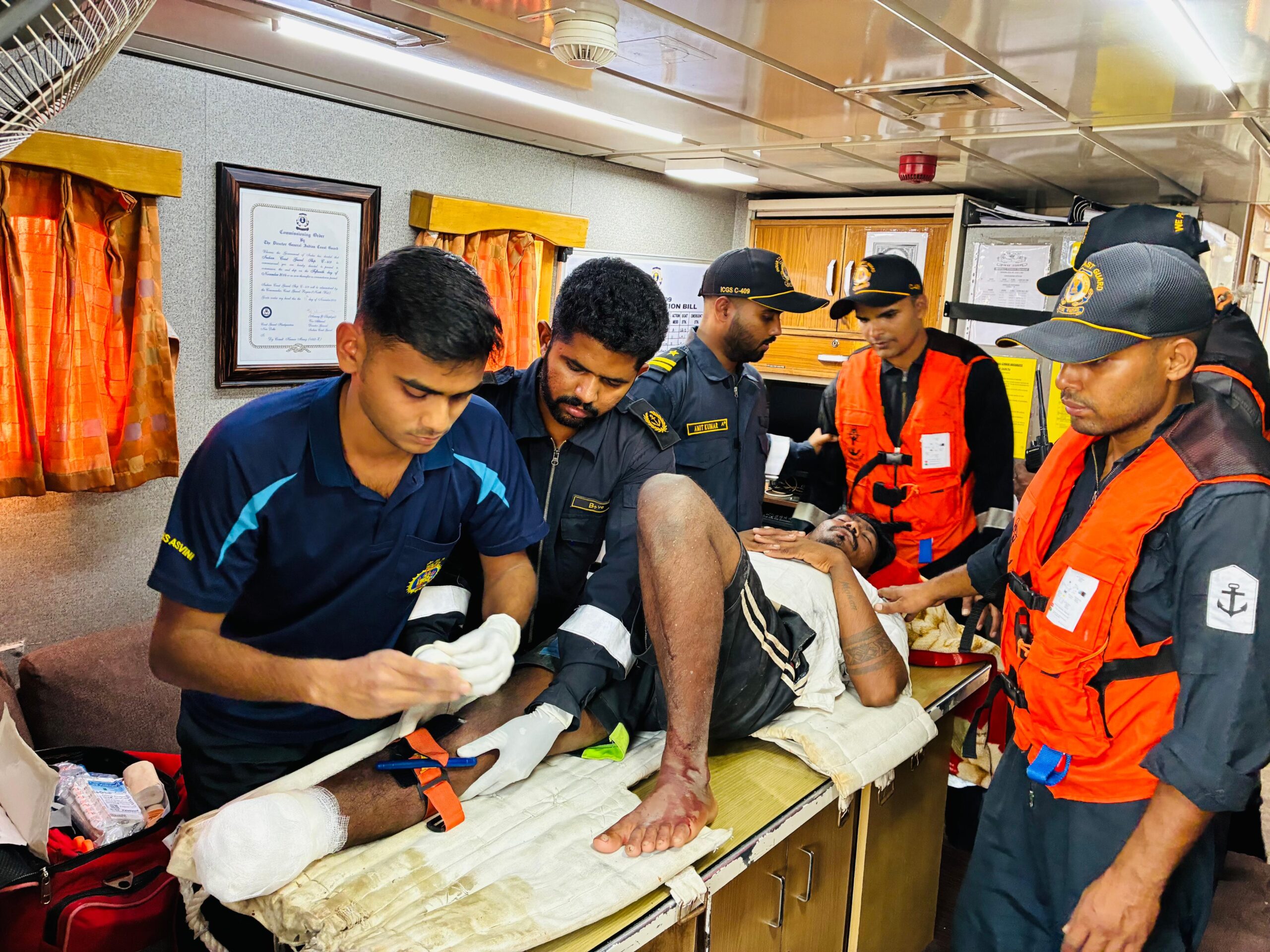 આ કટોકટીના સમયે બોટના અન્ય ખલાસીઓએ સુઝબુઝ વાપરીને તાત્કાલિક પીપાવાવ કોસ્ટગાર્ડ અને બોટ એસોસિએશનના પ્રમુખને જાણ કરી હતી. પીપાવાવ કોસ્ટગાર્ડની ટીમે ત્વરિત મધદરિયે પહોંચી ઇજાગ્રસ્ત યુવાનને પ્રાથમિક સારવાર આપી હતી અને તાત્કાલિક કિનારે લાવ્યા હતા. જાફરાબાદ હોસ્પિટલમાં પ્રાથમિક તપાસ બાદ હાલત ગંભીર જણાતા તેમને વધુ સારવાર અર્થે ભાવનગર રિફર કરવામાં આવ્યા છે.