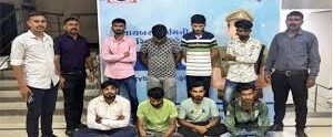 જેમાં જામનગરના યશપાલ ભરતસિંહ ચૌહાણ(૨૪), રાજકોટના નાઝ ઈબ્રાહીમ રાઝસુમરા(૨૩), રાજકોટના નિલેષ જમનભાઈ રાંક(૩૨), અમરેલીના જયદેવ બંકેશભાઈ રાંક(૨૦), જામનગરના અમીરહુસેન અનવરભાઈ માણેક(૨૧), અમરેલીના શબીર હનીફભાઈ સંવટ(૨૩), અમરેલીના રસીદ રમજાન પઠાણ(૨૧) અને જામનગરના ઈસ્માઈલ બચુભાઈ ખુંભીયા(૨૯)નો સમાવેશ થાય છે.