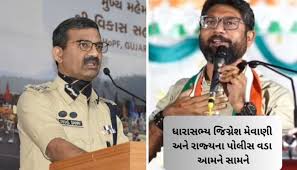 ગુજરાતમાં હવે પોલીસના પટ્ટા ઉતારવાની વાતને લઈને રાજકારણ ગરમાયું છે. આ મામલે હવે કોંગ્રેસના ધારાસભ્ય જિગ્નેશ મેવાણી અને રાજ્યના પોલીસ વડા આમને સામને આવી ગયા છે. ગઇકાલે ગુજરાતના ડીજીપી વિકાસ સહાયે પોલીસ સામે બોલનારા સહન ન કરવા પોતાના ડિપાર્ટમેન્ટના લોકોને સૂચના આપી હતી. તેના પર આજે કોંગ્રેસના ધારાસભ્ય જિગ્નેશ મેવાણીએ જવાબ આપ્યો છે. મેવાણીએ ડીજીપીને ચોખ્ખેચોખ્ખું સંભળાવતા કહી દીધું કે, મોટા ભાગના અધિકારીઓ ભ્રષ્ટાચાર કરી રહ્યા છે, તેમની સામે કાર્યવાહી કરો. તમારું નામ વિકાસ સહાય છે, તો ગુજરાતની જનતાની સહાય કરો અને દારૂ અને ડ્રગ્સ બંધ કરાવો. ગતરોજ અમદાવાદમાં યોજાયેલા ડીજીપી ડેસ્ક એવોર્ડ કાર્યક્રમ દરમિયાન રાજ્યના ડીજીપી વિકાસ સહાયે પોલીસ વિભાગને લઈને મહત્વપૂર્ણ નિવેદન આપ્યું હતું. તેમણે પોતાના સ્ટાફને સ્પષ્ટ શબ્દોમાં કહ્યું કે, “પોલીસ ડિપાર્ટમેન્ટના બહાર કોઈ વ્યક્તિ પોલીસ કર્મીને કહી જાય, તે સહન કરવાની જરૂર નથી. વધુમાં તેમણે જણાવ્યું કે, જ્યાં સુધી પોલીસ કર્મીની ભૂલ કે ખામીની વાત છે ત્યાં તેઓએ ઇશારો કરતાં જણાવ્યું કે, પોલીસ કર્મી ભૂલ કરે તો તેના પર કાર્યવાહી કરવાનો અધિકાર વિભાગનો છે. બહાર કોઈને બોલવાની જરૂર નથી. આ નિવેદન દરમિયાન તેમણે કોઈનું નામ લીધું નહોતું. પરંતુ ઈશારો ધારાસભ્ય જિગ્નેશ મેવાણી તરફ હોવાના સંકેત માનવામાં આવી રહ્યા છે. ડીજીપી વિકાસ સહાયની સ્પીચ સાંભળતા કાર્યક્રમમાં હાજર પોલીસ અધિકારીઓ તેમજ પોલીસ પરિવારના સભ્યોએ તેમના નિવેદનને સમર્થન આપતાં તાળીઓ પાડી હતી.જિગ્નેશ મેવાણીના સમર્થનમાં આજે મોટી સંખ્યામાં લોકો થરાદ ખાતે ઉમટી પડ્યા છે. જિગ્નેશ મેવાણીના સમર્થનમાં રેલીનું આયોજન કરાયું છે. આ રેલીમાં સાંસદ ગેનીબેન ઠાકોર અને બનાસકાંઠા જિલ્લાના કોંગ્રેસ પ્રમુખ ગુલાબ સિંહ રાજપૂત હાજર રહેશે. જિગ્નેશ મેવાણીના સમર્થનમાં રેલી થરાદ ચાર રસ્તાથી કલેક્ટર કચેરી જશે. કલેક્ટર કચેરીમાં પહોંચી જીલ્લા કલેક્ટરને ડ્રગ અને દારૂની બદી બંધ કરાવવા માટે આવેદનપત્ર અપાશે.