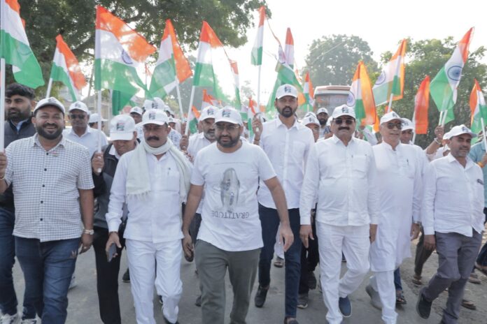 દેશના મહાન સપૂત સરદાર વલ્લભભાઈ પટેલની ૧૫૦મી જન્મજયંતિના પાવન અવસરે ધારી વિધાનસભા મતવિસ્તારમાં વીરપુર ગામેથી ખીચા ગામ સુધી યુનિટી માર્ચ-પદયાત્રાનું સફળ આયોજન હાથ ધરવામાં આવ્યું હતું. પદયાત્રા દરમિયાન રાષ્ટ્રીય એકતાનો સંદેશ પ્રસરાવવામાં આવ્યો હતો. રાષ્ટ્રની મજબૂત એકતાના સંદેશને પ્રસરાવતી આ યુનિટી માર્ચ પદયાત્રામાં ધારાસભ્ય જે.વી. કાકડીયા, જિલ્લા ભાજપ પ્રમુખ અતુલભાઈ કાનાણી, પ્રાંત અધિકારી, પદાધિકારીઓ, અધિકારીઓ અન્ય આગેવાનો સહિત બહોળી સંખ્યામાં નાગરિકો ઉત્સાહભેર જોડાયા હતા. આ યુનિટી માર્ચ-પદયાત્રાના રૂટ ઉપર પદયાત્રિકોનું જુદા જુદા સામાજિક અગ્રણીઓ દ્વારા ઉત્સાહભેર પુષ્પવર્ષા કરીને સ્વાગત- અભિવાદન કરવામાં આવ્યું હતું. આ યુનિટી માર્ચ પદયાત્રાના પ્રારંભ પૂર્વે સરદાર વલ્લ્ભભાઈ પટેલની પ્રતિમાને મહાનુભાવોએ પુષ્પાંજલિ પણ અર્પણ કરી હતી. યુનિટી માર્ચ – પદયાત્રા અન્વયે ધારીના વીરપુર ગામે આરોગ્ય કેન્દ્રના નવા અદ્યતન બિલ્ડીંગનું લોકાર્પણ કરવામાં આવ્યું હતું. ઉપરાંત માધુપુર ગામે નવા બસસ્ટેશનનું પણ લોકાર્પણ સંપન્ન થયું હતું. સર્વ રોગ નિદાન કેમ્પ, બ્લડ ડોનેશન કેમ્પ, વૃક્ષારોપણ સહિતના વિવિધ કાર્યક્રમ પણ યોજવામાં આવ્યા હતા. જેમાં બહોળી સંખ્યામાં નાગરિકો જોડાયા હતા. વિવિધ શાળા અને કોલેજના વિદ્યાર્થીઓએ રંગારંગ સાંસ્કૃતિક કાર્યક્રમોની પ્રસ્તુતિ કરીને રાષ્ટ્રીય એકતાના સંદેશને પ્રસરાવ્યો હતો. નાગરિકોએ ‘એક ભારત-શ્રેષ્ઠ ભારત’, ‘ભારત માતા કી જય’, ‘વંદે માતરમ્’ના નારા લગાવીને વાતાવરણને દેશભક્તિમય બનાવ્યું હતું.
