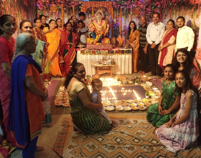 ધોરાજીના સ્ટેશન રોડ વિસ્તારમાં આવેલા વિશાલ એપાર્ટમેન્ટ ખાતે ભવ્ય ગણેશ મહોત્સવનું આયોજન કરવામાં આવ્યું હતું. જેમાં ‘વિશાલ એપાર્ટમેન્ટ કા રાજા’ ગણેશ મહોત્સવમાં મહિલા મંડળ દ્વારા ૫૬ ભોગના દિવ્ય દર્શન સાથે ૧૧૧ દીપમાળા સાથે મહાઆરતીનો કાર્યક્રમ યોજવામાં આવ્યો હતો. આ પ્રસંગે ભાવિક ભક્તજનોએ દિવ્ય લાભ લીધો હતો.