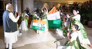 પીએમ મોદી બ્રાઝિલની ચાર દિવસની મુલાકાતે રિયો ડી જાનેરો પહોંચ્યા છે. અહીં ભારતીય સમુદાય દ્વારા તેમનું ભવ્ય સ્વાગત કરવામાં આવ્યું હતું. પીએમ મોદી બ્રાઝિલમાં ૧૭મા બ્રિક્સ સમિટમાં પણ ભાગ લેશે. તે જ સમયે, ભારતીય પ્રવાસીઓએ રિયો ડી જાનેરોમાં પીએમ મોદીનું સ્વાગત કરવા માટે પરંપરાગત નૃત્યો અને લોકગીતો રજૂ કર્યા. આમાં ખાસ વાત એ હતી કે પીએમ મોદીની સામે ઓપરેશન સિંદૂરની થીમ પર આધારિત ‘યે દેશ નહીં મિટને ડુંગા’ ગીત પર નૃત્ય પ્રદર્શન પણ રજૂ કરવામાં આવ્યું હતું. આ દરમિયાન પીએમ મોદીએ ભારતીયો સાથે પણ વાત કરી હતી.