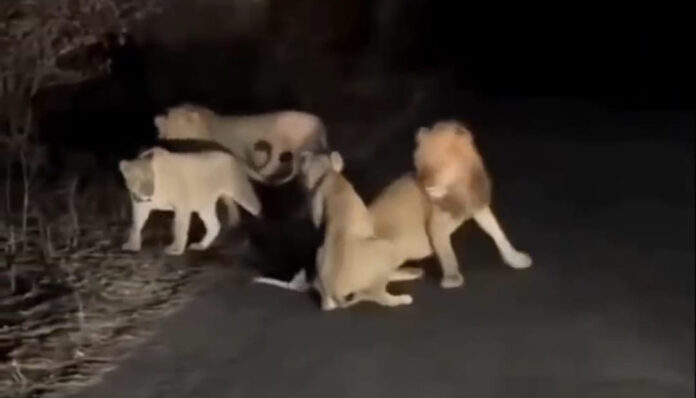 અમરેલી જિલ્લામાં સિંહોની સંખ્યામાં વધારો થયો છે. સિંહો હવે પરિવાર સાથે જંગલ વિસ્તાર છોડી રેવન્યૂ વિસ્તારમાં પણ આંટાફેરા મારતા હોવાથી જંગલ વિસ્તારને અડીને આવેલા ગામડાઓના લોકોમાં ભયનો માહોલ છવાયો છે તો ઘણા વાહનચાલકોને સિંહદર્શનનો લાભ પણ મળે છે. બગસરા નજીક આવેલા હામાપુર ગામથી કાગદડી જવાના રસ્તે સિંહ પરિવાર જાવા મળ્યો હતો. જાણવા મળતી માહિતી મુજબ સિંહ બેલડી સામે બીજી એક સિંહ બેલડી આવી જતા થોડીવાર બંને વચ્ચે ઘર્ષણ પણ થયુ હતું. અત્રે નોંધનીય છે કે, હામાપુર વિસ્તારમાં સિંહોની સંખ્યા હોવાથી અનેક લોકો ગેરકાયદે સિંહદર્શન કરવા પણ આવી પહોંચે છે. હાલ તો હામાપુર-કાગદડી ગામ પાસે સિંહનું ટોળુ જાવા મળતા એક વાહનચાલકે આ ઘટનાને કેમેરામાં કેદ કરી હતી.