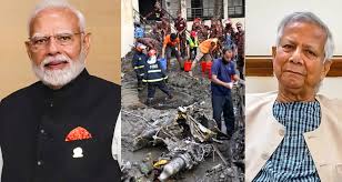 ભારતના વડા પ્રધાન નરેન્દ્ર મોદીએ ઢાકામાં વિમાન દુર્ઘટના પર શોક વ્યક્ત કર્યો હતો અને બાંગ્લાદેશને શક્ય તેટલી મદદ કરવાની વાત કરી હતી. પીએમ મોદીએ એકસ પર એક ટીવટમાં કહ્યું હતું કે- “ઢાકામાં થયેલા દુઃખદ હવાઈ દુર્ઘટનામાં જાનમાલના નુકસાનથી અમે ખૂબ જ આઘાત અને દુઃખી છીએ, જેમાંના ઘણા યુવાન વિદ્યાર્થીઓ હતા. અમારી સંવેદના શોકગ્રસ્ત પરિવારો સાથે છે. અમે ઘાયલોના ઝડપી સ્વસ્થ થવા માટે પ્રાર્થના કરીએ છીએ. ભારત બાંગ્લાદેશ સાથે એકતામાં ઉભું છે અને શક્ય તેટલી મદદ અને સમર્થન આપવા તૈયાર છે.