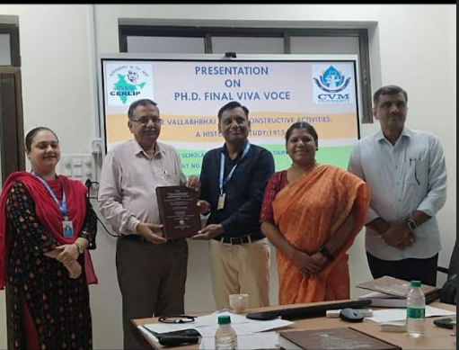 અમરેલીના સંજોગ ન્યુઝ પેપર સાથે સંકળાયેલા લેખક વિપુલ પટેલે શૈક્ષણિક ક્ષેત્રમાં નવી સિદ્ધિ હાંસલ કરી છે. ગઈકાલે આણંદ ખાતે આવેલી સીવીએમ યુનિવર્સિટી, વલ્લભ વિદ્યાનગરમાંથી તેમને પીએચડીની ડિગ્રી પ્રાપ્ત થઈ છે. આ સફળતા બાદ હવે તેઓ ડા. વિપુલ પટેલ તરીકે ઓળખાશે. પીએચડી ડિગ્રી પ્રાપ્ત થવાને પગલે તેમના મિત્રો, સહકર્મીઓ અને સંજોગ ન્યુઝ પરિવાર દ્વારા શુભેચ્છાઓ અને અભિનંદન પાઠવવામાં આવ્યા હતા.