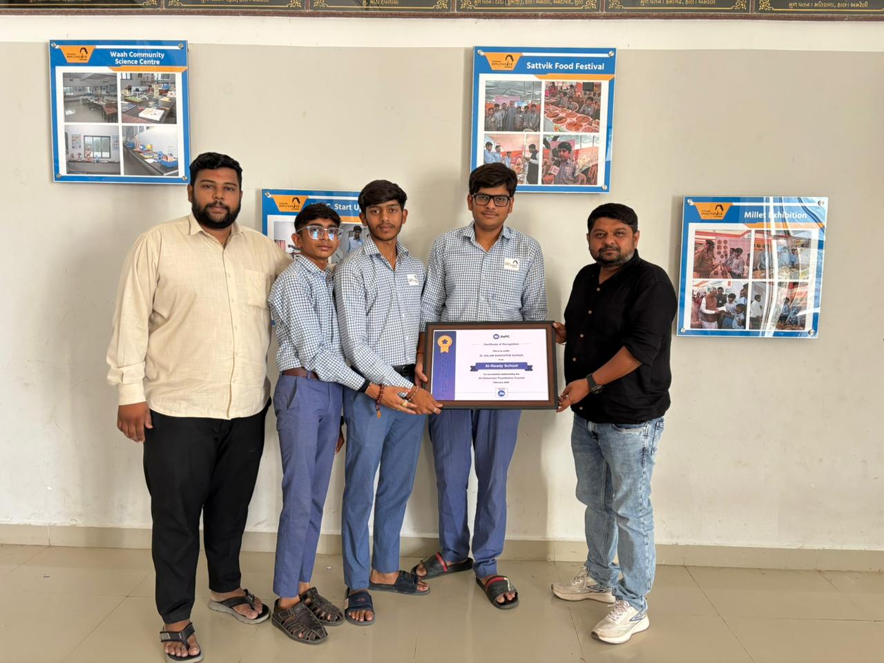 શિક્ષણમાં આધુનિક ટેક્નોલોજીના સમન્વય સાથે અમરેલીની ડો. કલામ ઇનોવેટિવ સ્કૂલે એક નવી ઊંચાઈ હાંસલ કરી છે. જીઓ કંપની દ્વારા આ સંસ્થાને અમરેલી જિલ્લાની સૌપ્રથમ “એ.આઈ. રેડી સ્કૂલ” (છૈં ઇીટ્ઠઙ્ઘઅ જીષ્ઠર્રર્ઙ્મ) તરીકે જાહેર કરી સન્માનિત કરવામાં આવી છે.શાળામાં સ્થાપિત અદ્યતન એ.આઈ. કન્ટેન્ટ ક્રિએટર લેબ અને ડિજિટલ પ્રવૃત્તિઓને ધ્યાને રાખીને આ પ્રતિષ્ઠિત સર્ટિફિકેટ એનાયત કરવામાં આવ્યું છે. આ પ્રસંગે જીઓ અમરેલીના હેડ ગોહિલ સાહેબે શાળા પરિવારને અભિનંદન પાઠવ્યા હતા. શાળાના સંચાલક મંડળે જણાવ્યું કે, વિદ્યાર્થીઓને ભવિષ્યની ટેક્નોલોજી માટે તૈયાર કરવાના સંકલ્પને આ સિદ્ધિથી નવું બળ મળ્યું છે. આ સિદ્ધિ બદલ સમગ્ર અમરેલી અને સૌરાષ્ટ્રના શિક્ષણ જગતમાં હર્ષની લાગણી ફેલાઈ છે અને વાલીઓ તેમજ શિક્ષણપ્રેમીઓએ શાળાની આ અવિરત મહેનતને બિરદાવી છે.