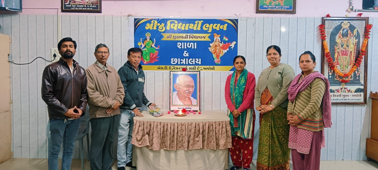 અમરેલીની શ્રીજી વિદ્યાર્થી ભુવનખાતેતા.૩૦/૦૧/ર૦ર૬ના રોજ રાષ્ટ્રપીતા મહાત્મા ગાંધીજી નિર્વાણ – શહીદ દિન નિમિતે શ્રધ્ધાંજલિ કાર્યક્રમ રાખવામાં આવ્યો હતો. આ કાર્યક્રમમાં ધોરણ ૯ અને ધોરણ ૧૧ના વિદ્યાર્થીઓ દ્વારા શહીદીના જીવન અને શૌર્યને રજુ કરતા અવસરો કહેવામાં આવ્યા હતા. તેમજ બાળકોએ દેશભક્તિના ગીતો રજુ કર્યા હતા. ઉપરાંત શાળાના સંચાલક દીપકભાઈ વઘાસિયાએ પ્રસંગોચિત ઉદબોધન કર્યુ અને ગાંધીજીના જીવનમાંથી પ્રેરણા લઈ રાષ્ટ્રની પ્રગતિમાં સૌ નાગરિકોએ યોગદાન આપવા અનુરોધ કર્યો હતો.