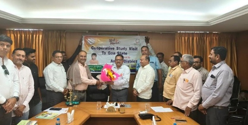 અમરેલી જિલ્લા સહકારી સંઘના અધ્યક્ષ મનીષ સંઘાણીના માર્ગદર્શન હેઠળ ગોવા રાજયના અભ્યાસ માટે ગયેલ ત્યારે અમરેલીની સહકારી સંસ્થાઓના મંત્રી/ મેનેજર દ્વારા ગોવાના પણજી ખાતે આવેલ ધી ગોવા સ્ટેટ કા. ઓપરેટીવ બેંક લી. ની મુલાકાત લીધી હતી, ત્યારે ઘી ગોવા સ્ટેટ કા – ઓપરેટીવ બેંક ના ચેરમેન શ્રી પાંડુરંગ નાયર કીર્તિકર જી, દ્રારા તમામનું સ્વાગત સહ સન્માન કર્યું હતું. આ ઉપરાંત બેંકના એમ. ડી શ્રી અનંત સાડરેકરજી અને જનરલ મેનેજર સુનિલ મેડકાઈકરજીએ બેંકના વહીવટી કાર્યો વિશે માહિતી આપી હતી ત્યારે અમરેલી જિલ્લા સહકારી સી.ઈ.ઓ ભાર્ગવ ત્રિવેદી દ્વારા ગુજરાત અને અમરેલીમાં ચાલતી સહકારી પ્રવૃત્તિ બાબતે ચર્ચા કરી હતી. આ ઉપરાંત ગોવાની દ્રી સ્તરીય સહકારી પદ્ધતિ બાબતે માહિતી મેળવી હતી.