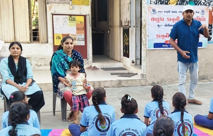 જિલ્લા કાનૂની સેવા સમિતિ વેરાવળના માર્ગદર્શન હેઠળ તાલુકા કાનૂની સેવા સમિતિ કોડીનાર દ્વારા અરણેજની કસ્તુરબા બાલિકા વિદ્યાલયના પટાંગણમાં વિશેષ જાગૃતિ કાર્યક્રમ યોજવામાં આવ્યો હતો. આ પ્રસંગે વિદ્યાર્થીનીઓને NALSA સ્કીમ હેઠળ માનવ અને જંગલી પ્રાણીઓ વચ્ચેના સંઘર્ષથી પ્રભાવિત પીડિતોને મળતી સહાય વિશે વિગતવાર માહિતી આપવામાં આવી હતી. વધતા જતા વન્યજીવ સંઘર્ષના બનાવોમાં થતી જીવહાનિ કે આર્થિક નુકસાન સામે વન વિભાગની વળતર યોજનાઓ અને સાવચેતીના પગલાં અંગે વિસ્તૃત માર્ગદર્શન પૂરું પાડવામાં આવ્યું હતું. આ કાર્યક્રમમાં લીગલ સેક્રેટરી અશ્વિન ચૌહાણ અને અંકિતા ડોડિયાની સૂચના મુજબ પીએલવી પ્રકાશ મકવાણા, દિવ્યાબેન મકવાણા તથા શાળાના હેડ ટીચર રંજનબેન પરમાર સહિતનો સ્ટાફ અને બાલિકાઓ ઉપસ્થિત રહ્યા હતા. આ અભિયાનનો મુખ્ય હેતુ જંગલી પ્રાણીઓ સાથેના ઘર્ષણમાં ઘટાડો કરી કુદરત અને માનવ વચ્ચે સંતુલન સ્થાપિત કરવાનો છે.