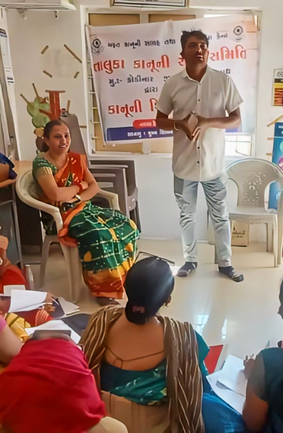 કોડીનારમાં તાલુકા કાનૂની સેવા સમિતિ દ્વારા શહેરના વોર્ડ નંબર ૭માં આવેલી આંગણવાડીમાં સંચાલિકા બહેનોને પોષણ સંગમ વિશે માહિતી તેમજ સાથે સાથે બાળકોનું નિયમિત વજન અને ઊંચાઈ માપણી, રસીકરણ તથા આરોગ્ય તપાસ પણ કરવામાં આવી હતી. અભિયાનમાં ગંભીર કુપોષિત બાળકોને જરૂરી તબીબી સારવાર અને માતાઓને સંતુલિત આહાર, સ્તનપાનનું મહત્વ, સ્વચ્છતા અને બાળકની યોગ્ય દેખભાળ અંગે માર્ગદર્શન પણ આપવામાં આવી રહ્યું છે. પોષણ સંગમ અભિયાનથી બાળકોના આરોગ્યમાં નોંધપાત્ર સુધારો થતો જોવા મળી રહ્યો છે. સમાજમાં સ્વસ્થ તથા સશક્ત પેઢીનું નિર્માણ થવામાં મદદ તેમજ સાયબર સિક્યુરિટી અને જાગૃતિ વિશે સમજ અપાઈ હતી. લીગલ સેક્રેટરી અશ્વિન ચૌહાણ અને અંકિતા ડોડીયાના માર્ગદર્શન હેઠળ પીએલવી પ્રકાશ જે. મકવાણા તેમજ સીડીપીઓ પુષ્પાબેન પરમાર, ગૌસ્વામી શ્વેતાબેન, ગંગદેવ રીનાબેન, ચંદ્રનાની દિશાબેન, વાઢેર બિંદુબેન, વાળા સવિતાબેન અને સ્ટફ હાજર રહ્યા હતા.