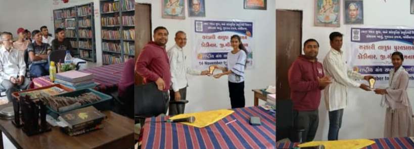 કોડીનાર સરકારી તાલુકા પુસ્તકાલય ખાતે રાષ્ટ્રીય ગ્રંથ સપ્તાહની ઉજવણી તા. ૧૪.૧૧.૨૦૨૫ થી તા. ૨૦.૧૧.૨૦૨૫ દરમિયાન કરવામાં આવી હતી. આ સપ્તાહની ઉજવણીના ભાગરૂપે વિવિધ કાર્યક્રમોનું આયોજન કરવામાં આવ્યું હતું, જેમાં ૧૫ જેટલી બહેનો અને ૧૦ જેટલા ભાઈઓ સહિત કુલ ૨૫ સ્પર્ધકોએ ઉત્સાહભેર ભાગ લીધો હતો.ઉજવણીના ભાગરૂપે ચિત્ર સ્પર્ધા, વકૃત્વ સ્પર્ધા અને પુસ્તકોનું પ્રદર્શન યોજવામાં આવ્યું હતું. ત્યારબાદ મિતલબેન ગોવિંદભાઈ બારડે વિદ્યાર્થીઓ અને સ્પર્ધકોને સ્પર્ધાત્મક પરીક્ષા લક્ષી ઉપયોગી માર્ગદર્શન પૂરું પાડ્યું હતું.