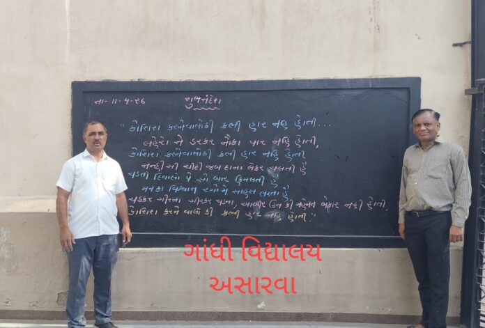 ૧૨/૪/૨૬ તારીખે, ગાંધી વિદ્યાલય, અસારવા ખાતે હાયર સેકન્ડરીના ટાટ પરીક્ષાર્થીઓ મારા કેન્દ્ર ઉપર એક્ઝામ આપવા આવવાના છે એટલે પ્રવેશદ્વાર ઉપર મેં કોશિશ કરને વાલો કી હાર નહિ હોતી તેવો સુંદર શુભેચ્છા સંદેશ અમારી સંસ્થાના ઉદ્યમી શિક્ષક શ્રી રાજુભાઈ દેસાઈ દ્વારા આલેખન કરાવ્યો છે. તેમના અક્ષરો અને લખવાની શૈલી અદભુત છે તેઓને કાર્ય કરવામાં મજા આવે છે. મને કહે કે સાહેબ સરસ વાક્યો લખાવો હું મસ્ત રીતે લખી દવ. આવા શિક્ષકો શાળાના ભાવરણ વાતાવરણને જીવંત રાખે છે. જે પરીક્ષાર્થીઓ પ્રવેશદ્વારના નોટિસ બોર્ડ ઉપર વાંચશે ત્યારે તેમના આત્મવિશ્વાસમાં પ્રાણ વાયુ ઉમેરાશે.એક હકારાત્મક વિચાર નિરાશાને ભગાડે છે. બાળકોમાં હકારાત્મક બાબતો અને પ્રેરણાત્મક પ્રસંગો સારા માર્ગે લઈ જવાનો શ્રેષ્ઠ પ્રયાસ છે. એક વિચાર વાતાવરણમાં સુલભતા લાવી શકે છે. જે પણ કાર્ય કરવાનું થાય તેની પાછળ શુભ આશય હોવો જોઈએ એટલે તો કહેવાય છે કે અંધકારને ગાળો બોલવા કરતા એક નાની મીણબત્તી સળગાવી દેવામાં આવે તો અંધકાર પ્રકાશમાં રૂપાંતર થઈ જાય છે. તણાવની પરિસ્થિતિમાં એક વિચાર પરીક્ષાર્થીઓમાં આશાનું કિરણ બની શકે છે.પરીક્ષા કેન્દ્રનું ભાવવરણ અને વાતાવરણ શાંતિ અને સુલેહ ભર્યું બને તે જરૂરી છે. ભવિષ્યના તેઓ શિક્ષકો છે. તેમને સાચો મેસેજ આપવો તે જ મોટીવેશન છે.જે પણ કાર્ય કરીએ તેની પાછળનો ઉદ્દેશ હકારાત્મક હોવો જોઈએ. શાળાઓ એ જ્ઞાનની ગંગોત્રી છે.તેમાંથી નિર્માણ થયેલા બાળકો દેશનું ભવિષ્ય છે અને આવા સ્પર્ધાત્મક વાતાવરણ સુધી પહોંચ્યા હોય એવા સમયે ભરપૂર આત્મવિશ્વાસવાળી વાત તેમના હૃદયની ભાવનાત્મકતા કેળવે છે.આવા પ્રસંગોની કોમળતા કેળવણીની નીવ રાખી શીતળતાને માર્ગે કાર્ય કરવાની પ્રેરણા આપે છે.