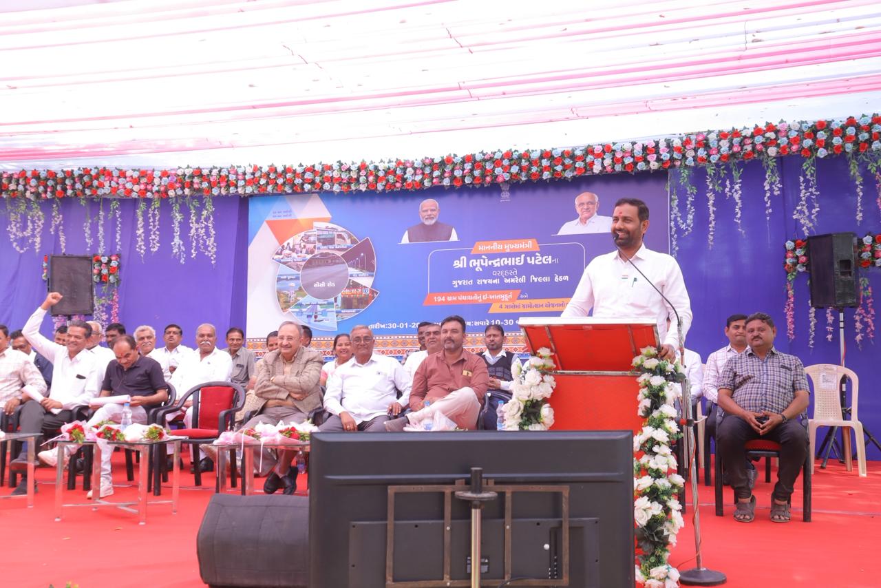 ગુજરાત રાજ્યના મુખ્યમંત્રી ભૂપેન્દ્રભાઈ પટેલની વર્ચ્યુઅલ ઉપસ્થિતિમાં અમરેલી જિલ્લાની કુલ ૧૯૪ ગ્રામ પંચાયતોના નવા મકાનના નિર્માણ માટે ઈ-ખાતમુહૂર્ત કાર્યક્રમ યોજાયો હતો. આ પ્રસંગે અમરેલી જિલ્લાના સજીયાવદર ખાતે ઊર્જા અને કાયદો રાજ્ય મંત્રી કૌશિકભાઈ વેકરીયાના અધ્યક્ષ સ્થાને કાર્યક્રમ યોજાયો હતો. કાર્યક્રમને સંબોધતા રાજ્ય મંત્રી કૌશિકભાઈ વેકરીયાએ જણાવ્યું હતું કે, રાજ્ય સરકાર દ્વારા મુખ્યમંત્રી ભૂપેન્દ્રભાઈ પટેલ તેમજ નાયબ મુખ્યમંત્રી હર્ષભાઈ સંઘવીના નેતૃત્વમાં ગ્રામ્ય વિસ્તારના સર્વાંગી વિકાસ માટે સતત પ્રયત્નો કરવામાં આવી રહ્યા છે. ગ્રામ પંચાયત મકાનોના નિર્માણથી ગ્રામ સ્વરાજને વધુ મજબૂતી મળશે તેમજ ગ્રામ્ય નાગરિકોને સરકારી સેવાઓ એક જ સ્થળે સરળતાથી ઉપલબ્ધ બનશે. રાજ્ય મંત્રીએ વધુમાં જણાવ્યું હતું કે, રૂ. ૪૮ કરોડથી વધુના ખર્ચે અમરેલી જિલ્લાની ૧૯૪ ગ્રામ પંચાયતોને આધુનિક સુવિધાઓથી સજ્જ નવા મકાનો ઉપલબ્ધ બનશે, જે ગ્રામ પંચાયતોની કાર્યક્ષમતામાં વધારો કરશે અને ગ્રામ્ય વહીવટને વધુ પારદર્શક બનાવશે. આગામી સમયમાં અમરેલી વિધાનસભા મતવિસ્તારના તમામ ગામમાં શાળાના નવા ભવન તૈયાર થશે જેની કામગીરી પ્રગતિમાં છે. માર્ગ મકાન વિભાગ રાજ્ય અને પંચાયત હસ્તકના તમામ રોડના કામ ચોમાસા પહેલા પૂર્ણ કરવામાં આવે તેવી નેમ છે. અમરેલી વિધાનસભા મતવિસ્તારની તમામ આંગણવાડીને મોડેલ આંગણવાડી બનાવવા માટે આયોજન કરવામાં આવી રહ્યું છે. વિકાસકાર્યોની વણઝારમાં રાજ્ય સરકાર ઉદાર હાથે અમરેલીને વિકાસકાર્યોની ભેટ આપી રહી છે. કૃષિકારોને સંબોધતા મંત્રીએ ઉમેર્યું કે, અમરેલી વિધાનસભા મતવિસ્તારના ખેડૂતોને રાજ્ય સરકારના બે કૃષિ રાહત પેકેજની સહાય મળી છે. વર્ષ ૨૦૨૫ના કમોસમી વરસાદની નુકસાની બદલ સહાય અને તાજેતરમાં જ રાજ્ય સરકારે આપેલા રૂ. ૧૦,૦૦૦ કરોડના કૃષિ રાહત પેકેજની સહાયના નાણા કૃષિકારોના ખાતામાં જમા થઈ ગયા છે. એક તરફ રાહત સહાય બીજી તરફ રૂ. ૧૫,૦૦૦ કરોડની ટેકાના ભાવે ખરીદીથી ખેડૂતોને સરકારે આફતમાં સાથ આપ્યો છે. આ કાર્યક્રમ પહેલા રાજ્યમંત્રી કૌશિકભાઈ વેકરીયાના હસ્તે લાપાળિયા, ચાંપાથળ મુકામે નવીન પંચાયત ભવનનું ખાતમુહૂર્ત કરવામાં આવ્યું હતું. જ્યારે સાજિયાવદર ખાતે ઈ-ખાતમુહૂર્ત બાદ શાસ્ત્રોક્ત વિધિ દ્વારા પંચાયત ભવનનું ખાતમુહૂર્ત કરવામાં આવ્યું હતું. આ કાર્યક્રમમાં જિલ્લા પંચાયત પ્રમુખ સુરેશભાઈ પાથર, જિલ્લા પંચાયતના સભ્યો મુકેશભાઈ બગડા, શંભુભાઈ મહિડા, કાળુભાઈ, પ્રવિણભાઈ માંગરોળીયા, તાલુકા પંચાયત અમરેલીના પ્રમુખ કિશોરભાઈ કાનપરીયા, અગ્રણી અતુલભાઈ કાનાણી, જિલ્લા વિકાસ અધિકારી પરીમલ પંડ્યા, જિલ્લા વહીવટીતંત્રના અધિકારીઓ અને કર્મયોગીઓ, સાજિયાવદરના સરપંચ હરેશભાઈ ધાધલ, આસપાસના 
