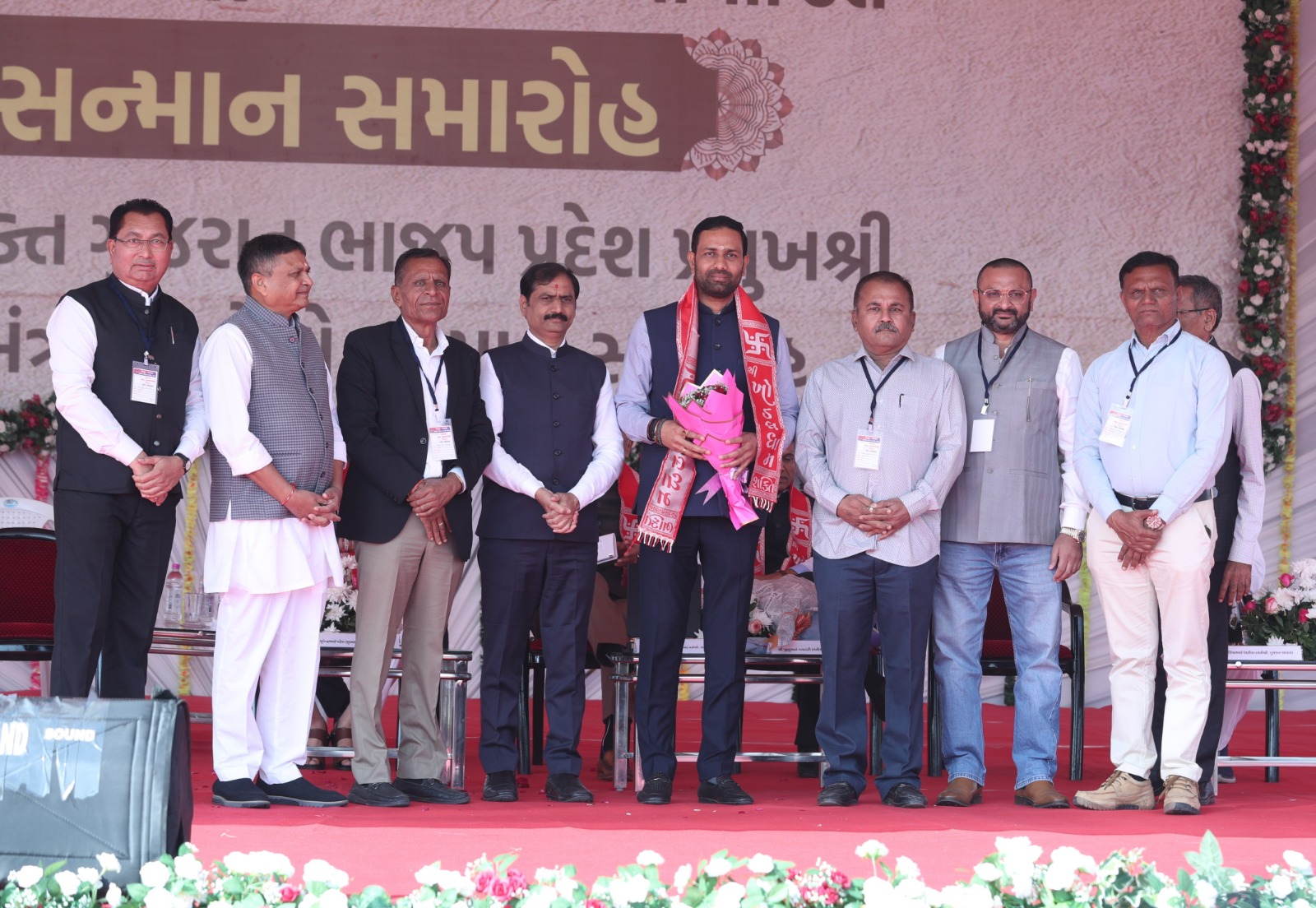 મુખ્યમંત્રી અને કેન્દ્રીય મંત્રી મનસુખભાઈ માંડવિયાની ઉપસ્થિતિમાં હજારોની મેદની વચ્ચે યોજાયો સન્માન સમારોહ