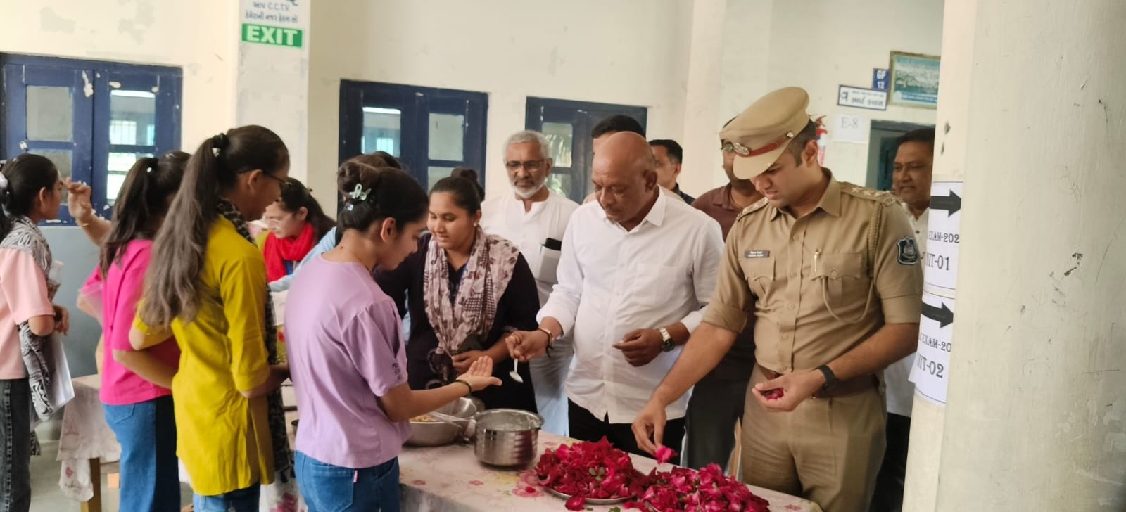 અમરેલીના ગજેરા કેમ્પસ-વિદ્યાસભા સ્કૂલમાં બોર્ડ પરીક્ષાની પરીક્ષા આપી રહેલા ધોરણ ૧૦ અને ૧૨ના ૬૦૦થી વધુ વિદ્યાર્થીઓને સાંસદ ભરતભાઈ સુતરિયા અને ડ્ઢરૂજીઁ ચિરાગભાઈ દેસાઈ, જિલ્લા પંચાયતના કારોબારી ચેરમેન કરશનભાઈ ભીલ, સંદીપભાઈ માંગરોળીયા, દિલીપભાઈ સાવલિયા વિશ્વહિન્દુ પરિષદના પ્રમુખ વિજયભાઈ દેસાઈ સાથે અતુલભાઈ કાનાણીએ શૈક્ષણિક ક્ષેત્રે ઉત્તમ સિદ્ધિ હાંસલ કરે તેવી શુભેચ્છા સાથે કુમકુમ તિલક કરી દહીં અને ગોળધાણા વડે મીઠું મોઢું કરાવવામાં આવ્યું હતું. આ પરંપરાગત વિધિ માત્ર શુભકામનાઓનું પ્રતીક નહીં પરંતુ વિશ્વાસ, સંસ્કાર અને સકારાત્મક ઊર્જાનું સંદેશ આપતી હતી. દરેક વિદ્યાર્થીના ચહેરા પર આત્મવિશ્વાસ અને આશાની ઝળહળતો સ્પષ્ટ જોવા મળી. વિદ્યાર્થીઓને તણાવમુક્ત રહી એકાગ્રતા સાથે પરીક્ષા આપે તેવી સલાહ આપવામાં આવી. “આત્મવિશ્વાસ જ સફળતાની ચાવી છે” એવો પ્રેરણાદાયી સંદેશ આપતાં મંત્રી ચતુરભાઈ ખુંટ, કેમ્પસ ડાયરેક્ટર વસંતભાઈ પેથાણીએ વિદ્યાર્થીઓને હિંમત, શિસ્ત અને સંકલ્પ સાથે પરીક્ષામાં શ્રેષ્ઠ પ્રદર્શન કરવા પ્રોત્સાહિત કર્યા હતા.
