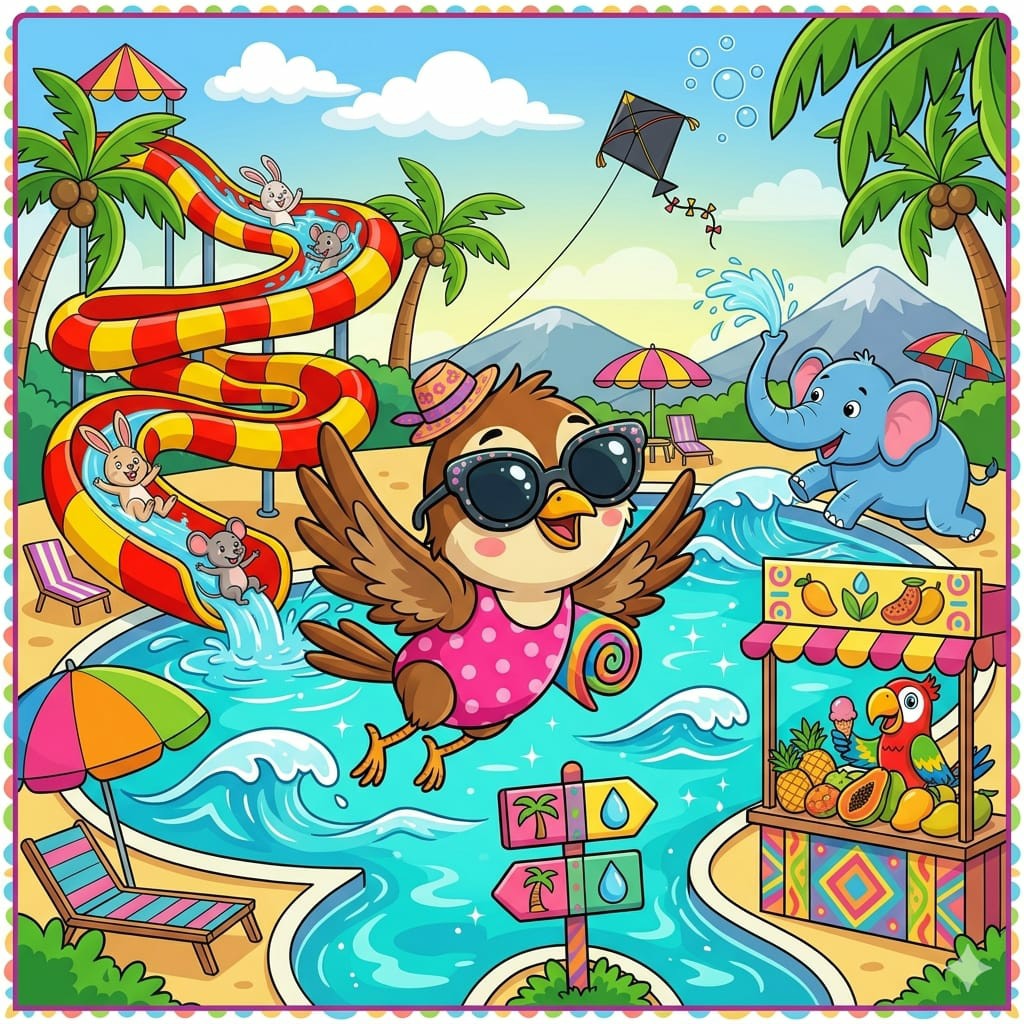 વોટરપાર્ક પહોંચીને ચક્કીબેન રાજી-રાજી થઈ ગયાં. ત્યાં તો મોટો સ્વિમિંગ પૂલ! ચક્કીબેને પાંખો ફફડાવીને ગાયુંઃ