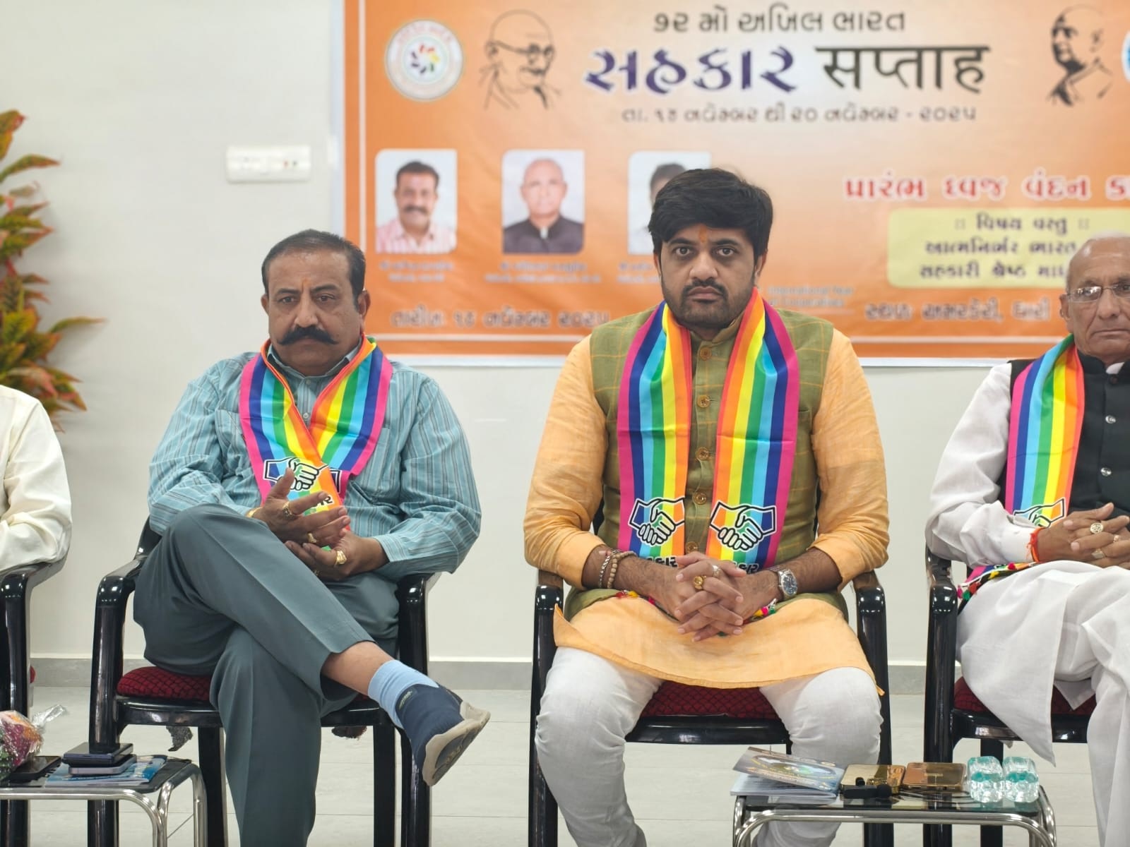 ભારતીય રાષ્ટ્રીય સહકારી સંઘના દિશાનિર્દેશો અનુસાર અને ગુજરાત રાજ્ય સહકારી સંઘના માર્ગદર્શન હેઠળ અમરેલી જિલ્લા સહકારી સંઘના અધ્યક્ષ મનીષ સંઘાણીની ઉપસ્થિતિમાં જિલ્લા સહકારી સંઘ, જિલ્લા સહકારી દૂધ ઉત્પાદક સંઘ લી. અને ટીમ સહકાર અમરેલીના સંયુક્ત ઉપક્રમે અમર ડેરીના પટાંગણમાં ૭૨મા અખિલ ભારતીય સહકાર સપ્તાહ અંતર્ગત સહકારી ધ્વજવંદન કરી સહકાર સપ્તાહનો શુભારંભ કરાયો હતો. આ પ્રસંગે મહેમાન તરીકે અમર ડેરીના ચેરમેન અશ્વિનભાઈ સાવલિયા, અમરેલી જિલ્લા ખરીદ વેચાણ સંઘના પ્રમુખ જયંતીભાઈ પાનસુરીયા, અમરેલી જિલ્લા મધ્યસ્થ બેન્કના ઉપાધ્યક્ષ અને જિલ્લા સંઘના ડાયરેક્ટર અરુણભાઈ પટેલ, ડાયરેક્ટર ચંદુભાઈ રામાણી, ડાયરેક્ટર રામજીભાઈ કાપડિયા, જિલ્લા સંઘના યુથ ડાયરેક્ટર રાજભાઈ જાની, જગદીશભાઈ નાકરાણી, રવિભાઈ પંડ્યા, જિલ્લા મધ્યસ્થ બેન્કના જનરલ મેનેજર બી.એસ.કોઠીયા, અમર ડેરીના એમ.ડી. આર.એસ. પટેલ, સંઘના એક્ઝીક્યુટીવ ઓફિસર ભાર્ગવભાઈ ત્રિવેદી, સહકારી આગેવાનો અને સહકારી કર્મચારીઓ હાજર રહ્યા હતા.