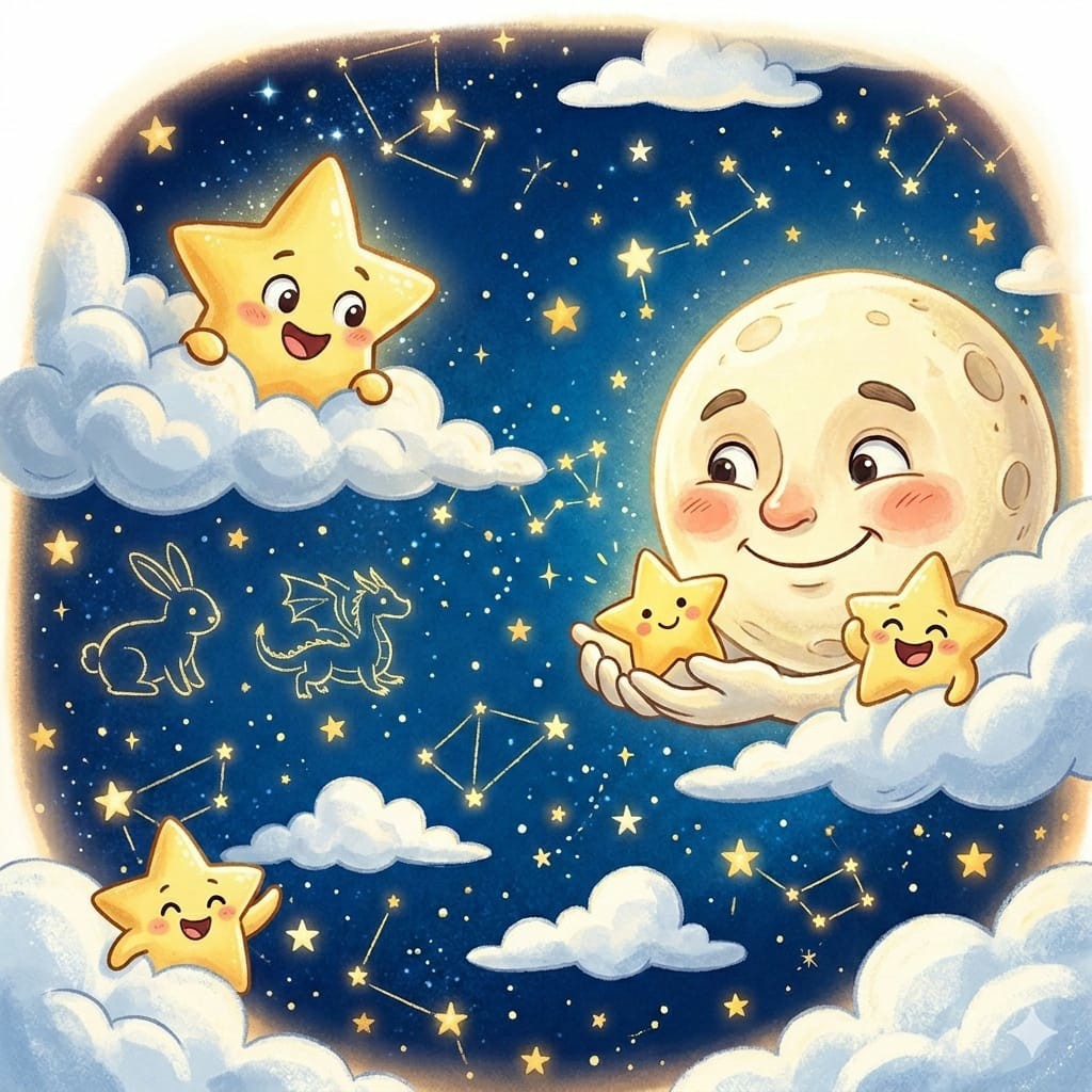 ટમટમ દોડીને એક મોટા સફેદ વાદળમાં સંતાઈ ગયો. બીજા તારલાઓએ જોયું તો એમને પણ મજા પડી ગઈ. બધા તારલાઓ વાદળ પાછળ સંતાવા લાગ્યા. આકાશમાં તો ‘સંતાકૂકડી’ની રમત શરૂ થઈ ગઈ! ક્યારેક તારલા દેખાય, તો ક્યારેક વાદળ પાછળ છુપાઈ જાય.