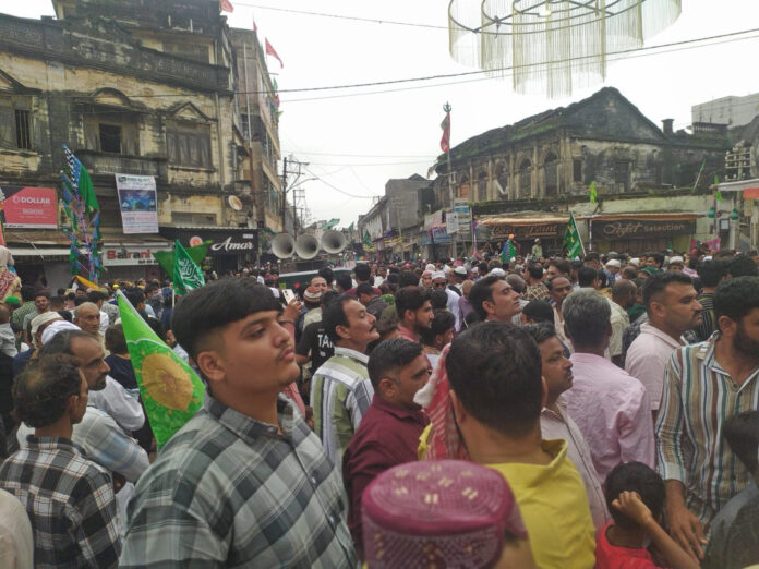 ધોરાજી ખાતે મુસ્લિમ સમાજ દ્વારા પવિત્ર ઈદ-એ-મિલાદુન્નબી પર્વની શાનદાર ઉજવણી કરવામાં આવી હતી. આ પ્રસંગે મોહમ્મદ પયગંબર સાહેબની યાદમાં સુન્ની મુસ્લિમ જમાત દ્વારા એક વિશાળ શહેરી જુલૂસનું આયોજન કરવામાં આવ્યું હતું. બહારપુરાની હૈદરી મસ્જિદ પાસેથી શરૂ થયેલું આ જુલૂસ ‘સરકાર કી અહમદ મરહબા’ના ગગનભેદી નારા સાથે શહેરના મુખ્ય માર્ગો પર ફર્યું હતું. આ જુલૂસમાં સુન્ની મુસ્લિમ જમાતના અગ્રણીઓ, ધર્મગુરુઓ અને મોટી સંખ્યામાં મુસ્લિમ બિરાદરો જોડાયા હતા. જુલૂસની પૂર્ણાહુતિ પોસ્ટ ઓફિસ ચોક પાસે આવેલી મક્કા મસ્જિદ પાસે થઈ હતી. જુલૂસ બાદ પોસ્ટ ઓફિસ પાસે ભવ્ય ન્યાઝ શરીફ (ભોજન)નું પણ આયોજન કરવામાં આવ્યું હતું.