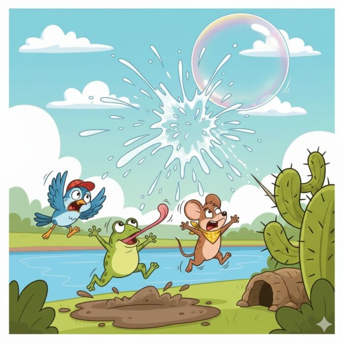 દેડકાભાઈ બોલ્યા, ‘‘ખસી જાઓ બધા, હવે આ પરપોટાને હું પકડીશ!’’ દેડકાએ જોરથી હવામાં છલાંગ લગાવી. બરાબર એ જ સમયે પરપોટો થોરના એક અણીદાર કાંટાને અડી ગયો.