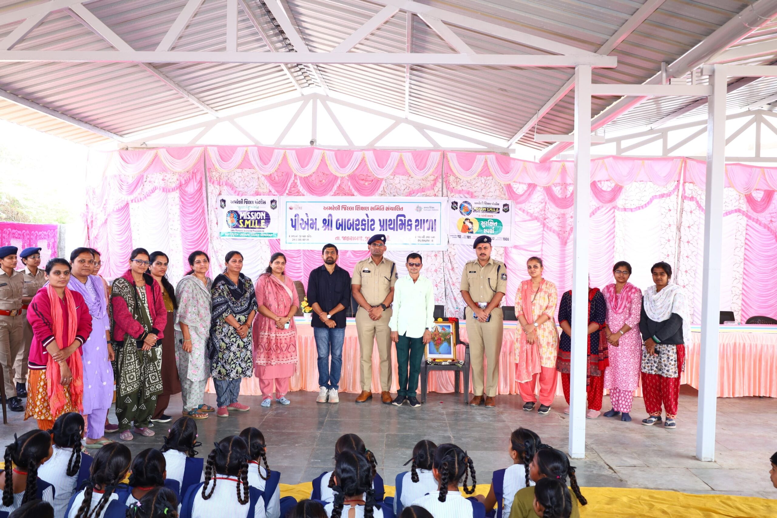 જાફરાબાદના બાબરકોટની પ્રાથમિક શાળામાં ‘મિશન સ્માઈલ’ અંતર્ગત જિલ્લાના ઉચ્ચ પોલીસ અધિકારીઓની ઉપસ્થિતિમાં બાળકો માટે જાગૃતિ કાર્યક્રમ યોજાયો હતો. જાફરાબાદ મરીન પોલીસ સ્ટેશન દ્વારા આયોજિત આ કાર્યક્રમમાં બાળકોને સુરક્ષિત સ્પર્શ, અસુરક્ષિત સ્પર્શ અને જાતીય શોષણ સામે સાવચેત રહેવા અંગે માર્ગદર્શન આપવામાં આવ્યું હતું. કાર્યક્રમમાં મુખ્ય અતિથિ તરીકે અમરેલી જિલ્લાના પોલીસ અધિક્ષક સંજય ખરાત તથા સાવરકુંડલા વિભાગના મદદનીશ પોલીસ અધિક્ષક જયવીર ગઢવીએ બાળકોને માર્ગદર્શન આપ્યું હતું. સમગ્ર કાર્યક્રમનું આયોજન બાબરકોટ પ્રાથમિક શાળા અને જાફરાબાદ મરીન પોલીસ સ્ટેશનના સંયુક્ત પ્રયાસોથી કરવામાં આવ્યું હતું.