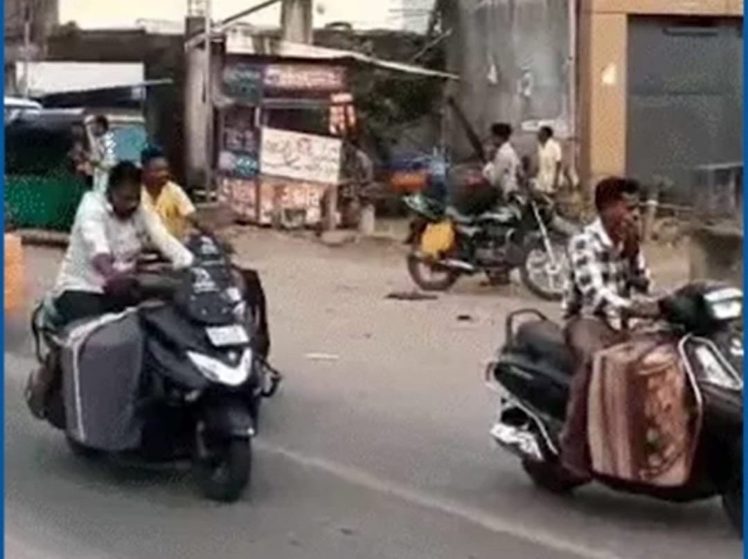 ‘‘ઉપરનો ફોટો જૂઓ, એક જ લાઈનમાં પંદર પંદર સ્કૂટર છે. આગળ માલ (દારૂ) રાખીને બિન્દાસ જઈ રહ્યા છે. ન કોઈને શંકા પડે. ના કોઈ પકડે. હપ્તા દેવાની ઝંઝટ જ ખતમ.’’