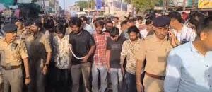 મહેસાણાના વિસનગરમાં ૧૪ વર્ષની બાળકી પર થયેલા ગેંગરેપથી સમગ્ર વિસ્તારમાં ચકચાર મચી ગઈ છે. પોલીસે આ જઘન્ય ગુનામાં સંડોવાયેલા તમામ છ આરોપીઓની ધરપકડ કરી છે અને તેમને જાહેરમાં પરેડ કરાવ્યા છે. આવા ગુનાઓ સામે સમાજને મજબૂત સંદેશ આપવા માટે આ કાર્યવાહી કરવામાં આવી છે.માહિતી અનુસાર, આ ઘટના વિસનગરમાં બની હતી, જ્યાં છ પુરુષોએ ૧૪ વર્ષની બાળકી પર વારાફરતી બળાત્કાર કર્યો હતો. પીડિતાની ફરિયાદના આધારે, પોલીસે તાત્કાલિક કાર્યવાહી કરી અને તમામ આરોપીઓની ધરપકડ કરી. આરોપીઓની ઓળખ હજુ સુધી જાહેર કરવામાં આવી નથી, પરંતુ પોલીસે જણાવ્યું છે કે બધા સામે કડક કાયદાકીય કાર્યવાહી કરવામાં આવશે.આ ગંભીર ગુનાને ધ્યાનમાં રાખીને, વિસનગર પોલીસે આરોપીઓની જાહેરમાં પરેડ કરાવવાનો નિર્ણય લીધો. આ સરઘસ દરમિયાન, આવા ગુનાઓ વિશે જાગૃતિ લાવવા અને સમાજમાં ભય ફેલાવવા માટે આરોપીઓની શહેરના મુખ્ય માર્ગો પર પરેડ કરવામાં આવી હતી. છેલ્લા કેટલાક દિવસોથી જાણે ગુજરાતમાં ગુનાહિત પ્રવૃત્તિએ માથું ઊંચક્યું હોય એમ એક પછી એક ઘટના બનતી જઈ રહી હતી. એને લઈને લોકોમાં પણ ડર પ્રવર્તી રહ્યો હતો અને સામે પોલીસ પર આક્રોશ વધતો જઈ રહ્યો હતો.લોકો પોતાને ઘરમાં પણ સુરક્ષિત નથી મહેસૂસ કરી રહ્યા. પોલીસે લોકોમાં ભય ફેલાવતા આવાં તત્વોની સાન ઠેકાણે પાડી છે.થોડા સમય પહેલા પોલીસે ત્રણ ગંભીર ગુનામાં સંડોવાયેલાં અસામાજિક તત્વોનું જાહેરમાં સરઘસ કાઢ્યું હતું. જે વિસ્તારમાં અસામાજિક તત્વો ભય ફેલાવે છે ત્યાં જ તેમનું સરઘસ કાઢી પોલીસ લોકોમાં તેમનો ડર ઓછો કરી રહી છે.સુરત પોલીસે મોટા વરાછા વિસ્તારમાં ચાર દિવસ પહેલાં જાહેરમાં મારામારી કરનારાં ત્રણ અસામાજિક ત¥વોનું સરઘસ કાઢ્યું હતું.