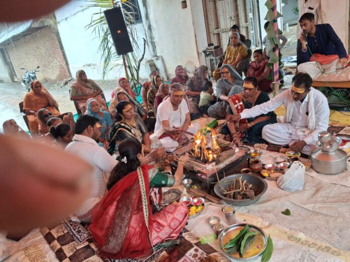 સાવરકુંડલા તાલુકાના મેરીયાણા ગામે ઝવેરી બજારના માણેક ચોક ખાતે તા. ૨ ઓક્ટોબર, ૨૦૨૫ (ગુરૂવાર)ના રોજ વિજયાદશમી (દશેરા)ના પવિત્ર પર્વ નિમિત્તે ભવ્ય યજ્ઞનું આયોજન કરવામાં આવ્યું હતું. દર વર્ષની પરંપરા મુજબ, અસત્ય પર સત્યના વિજયના પ્રતીક એવા દશેરાના આ પાવન દિવસે ગામમાં શાંતિ અને સુખાકારી જળવાઈ રહે તેવી ધાર્મિક ભાવના સાથે યજ્ઞ યોજવામાં આવ્યો હતો. આ ધાર્મિક કાર્યક્રમમાં ભરતભાઈ છગનભાઈ ખાત્રાણી, મનહરભાઈ ભીખુભાઈ બોદર અને દિનેશભાઈ છગનભાઈ ભાલાળા મુખ્ય યજમાન પદે રહ્યા હતા. ગામના સહુ લોકોએ હળી મળીને આ ભક્તિમય વાતાવરણ વચ્ચે દશેરાની ઉજવણી કરી હતી. આ સમયે ગામના સરપંચ હિતેશભાઈ ખાત્રાણી, ઉપસરપંચ દિલુભાઈ ધાધલ સહિત ગામના અગ્રણીઓ અને મોટી સંખ્યામાં ગ્રામજનો હાજર રહ્યા હતા.
