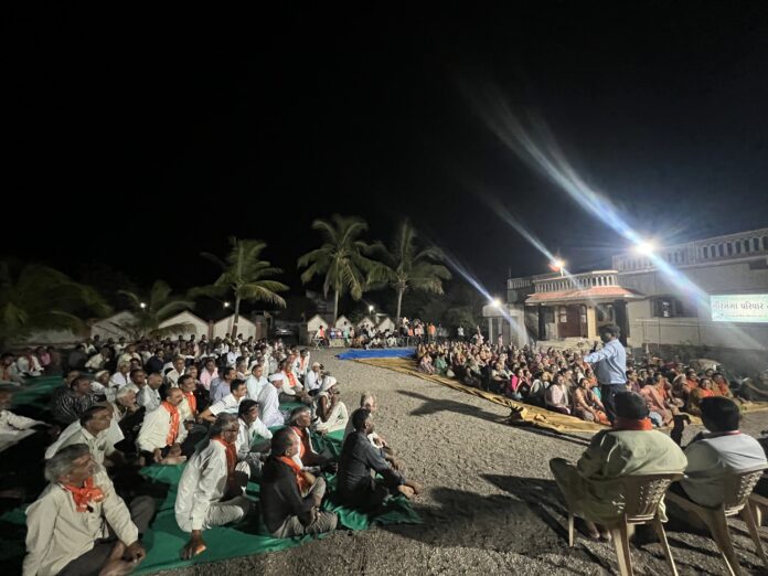 અમરેલીના રાંઢીયા ગામે ગીરગંગા પરિવાર ટ્રસ્ટ દ્વારા જળ જાગૃતિ બેઠક યોજાઈ હતી. જેમાં પ્રમુખ દિલીપભાઈ સખીયાએ ‘ગામનું પાણી ગામે અને સીમનું પાણી સીમમાં’ રોકવાનું આહવાન કર્યું હતું. તેમણે જણાવ્યું કે ખેતી અને પશુપાલન બચાવવા વરસાદી પાણીને જમીનમાં ઉતારવું અનિવાર્ય છે. અરવિંદભાઈ ડોબરિયા અને સરપંચ અરવિંદભાઈ કાકડિયાની ઉપસ્થિતિમાં ગ્રામજનોએ બોર રિચાર્જ અને ખેત તલાવડી જેવા માધ્યમો દ્વારા જળક્રાંતિમાં સહભાગી થવાનો અને પાણીના તળ ઊંચા લાવવાનો મક્કમ નિર્ધાર વ્યક્ત કર્યો હતો.