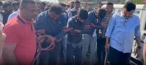 શહેરના કુવાડવા રોડ પોલીસ સ્ટેશન વિસ્તારમાં ગત ૧૬મી ડિસેમ્બરના રોજ બેડી ચોકડી પાસે આવેલી દાળ પકવાનની દુકાન ખાતે હિસ્ટ્રી શીટર ભુપત બાબુતર ઉર્ફે ભુપત ભરવાડના ભત્રીજાઓ સહિતના વ્યક્તિઓ દ્વારા લોખંડના પાઇપ સહિતના હથિયારો વડે વિપુલ વડેચા નામના વેપારી પર જીવલેણ હુમલો કરવામાં આવ્યો હતો. ત્યારે ઘટનાના ૨૦ દિવસ બાદ ક્રાઈમ બ્રાન્ચ દ્વારા હિસ્ટ્રી શીટર ભુપત બાબૂતર ઉર્ફે ભુપત ભરવાડના ભત્રીજા દેવશી બાબુતર, શ્યામ બાબુતર તેમજ કિશન સરસિયા નામના વ્યક્તિઓની ધરપકડ કરવામાં આવી છે. તો સાથે જ ઘટના સ્થળે દોરડાથી બાંધીને લઈ જઈ રી કન્સ્ટ્રક્શન પંચનામા સહિતની કાર્યવાહી હાથ ધરવામાં આવી છે. તેમજ પોલીસ દ્વારા ગુનાના કામે લોખંડના પાઇપ તેમજ ફોર્ચ્યુનર કાર પણ કબજે કરવામાં આવી છે.