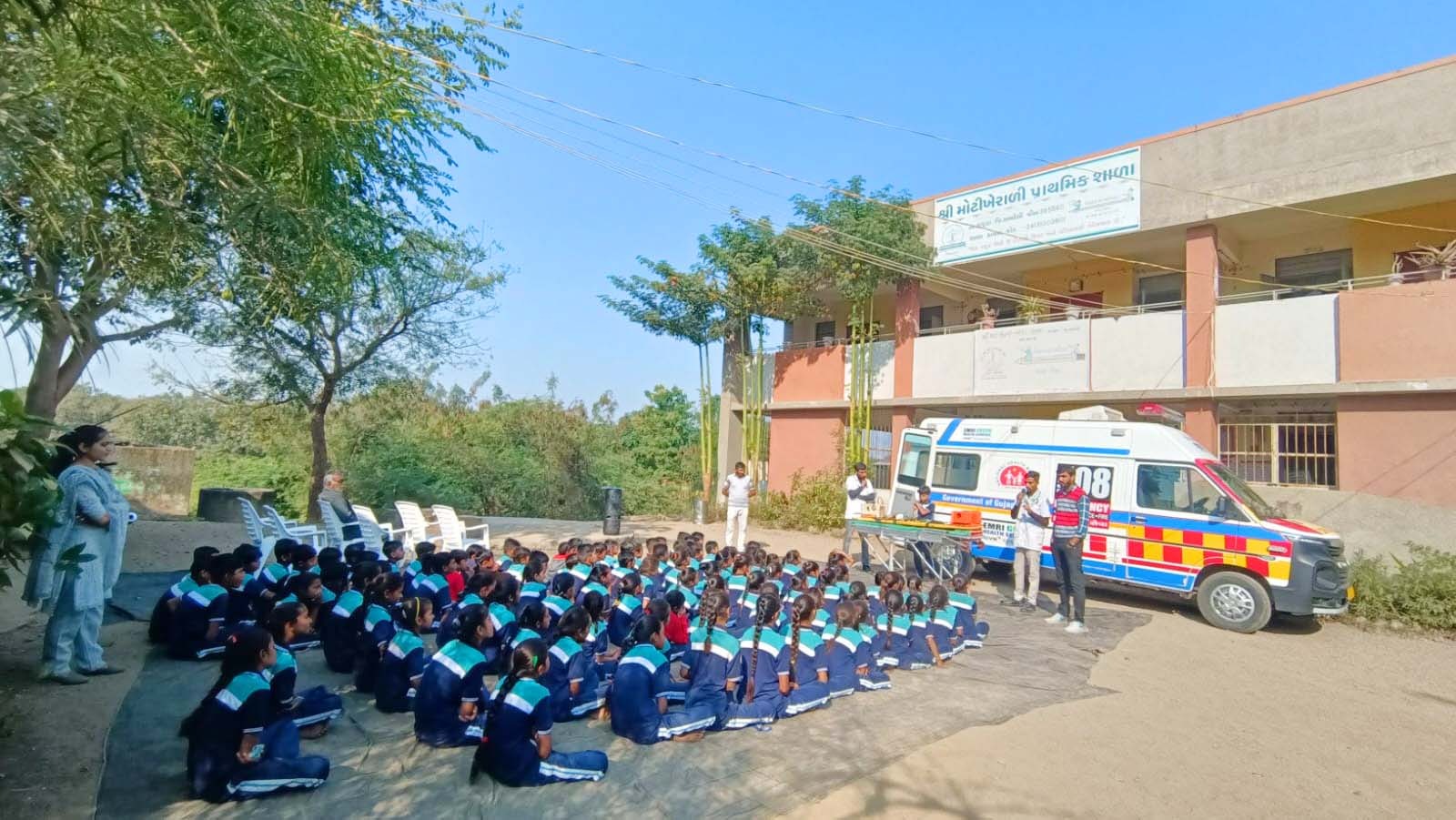 મોટી ખેરાળી પ્રાથમિક શાળામાં ‘બાળ દેવો ભવ’ના સૂત્ર સાથે વિદ્યાર્થીઓ માટે ૧૦૮ ઇમરજન્સી સેવા અંગે વિશેષ માર્ગદર્શન અભિયાનનું આયોજન કરવામાં આવ્યું હતું. આ કાર્યક્રમનો મુખ્ય હેતુ બાળકોમાં જીવનરક્ષક જ્ઞાન અને માનવીય સંવેદના કેળવવાનો હતો. રાજુલા ૧૦૮ની ટીમ દ્વારા વિદ્યાર્થીઓને અકસ્માત કે કટોકટીના સમયે CRP કેવી રીતે આપવું અને પ્રાથમિક સારવાર કેવી રીતે કરવી તેનું જીવંત પ્રદર્શન કરવામાં આવ્યું હતું. સાથે જ એમ્બ્યુલન્સમાં રહેલા અદ્યતન સાધનોની જાણકારી પણ આપવામાં આવી હતી. શાળાના આચાર્ય જયદીપભાઈ મુંગળાએ જણાવ્યું હતું કે, પુસ્તકીયા જ્ઞાનની સાથે બાળકોને વ્યવહારુ અને જીવનલક્ષી શિક્ષણ આપવું એ અમારું લક્ષ્ય છે. આ કાર્યક્રમમાં ગામના સરપંચ, SMC સભ્યો અને આગેવાનો મોટી સંખ્યામાં હાજર રહ્યા હતા અને શાળાના આ નવતર પ્રયોગને બિરદાવ્યો હતો.