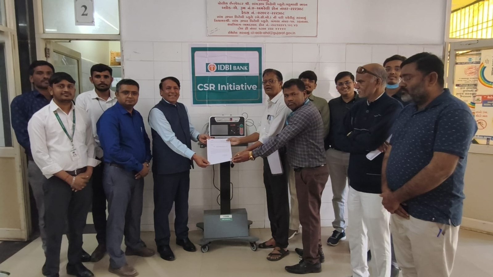 રાજુલામાં આઈ.ડી.બી. આઇ બેન્ક દ્વારા આજે સિવિલ હોસ્પિટલમાં ત્રણ આધુનિક મશીન ભેટ સ્વરૂપે આપવામાં આવ્યા હતા. આ પ્રસંગે રાજકોટના રિજનલ હેડ અશોક રાનદાની, વિમલ પિત્રોડા, આઈ.ડી.બી.આઈ બેન્ક રાજુલા બ્રાંચ હેડ જીતેન્દ્ર બોલીયા, પંકજ કણજરીયા, પ્રવિણ બારોટ, રાઘવ બલદાણીયા, જય દુધાત્રા, વિવેક જૈન, નાગરાજ ધાખડા, વિનોદ પરમાર, કલ્પેશ બારૈયા સહિતના અધિકારીઓ હાજર રહેલ. હૃદયની કોઈપણ ઇમરજન્સીના સમયે આ આ ડીફીબ્રિલેટર મશીન હોસ્પિટલમાં આવતા તમામ દર્દીઓ માટે આશીર્વાદરૂપ સાબિત થશે. આજના આ કાર્યક્રમમાં રાજુલા હોસ્પિટલના અધિક્ષક ડો. શિલ્પા જાવિયા, આર.એમ.ઓ ડો. ખુમાણ, ડો. હરેશ જેઠવા, ડો. વિનુભાઈ કલસરિયા, ડો. વિમલ ધાનાણી, ડો. ડી.જી. પરમાર, ડો. જય વાળાકી, હોસ્પિટલ સ્ટાફ જીંજાળાભાઈ, વાળાભાઈ વગેરે હાજર રહેલ.