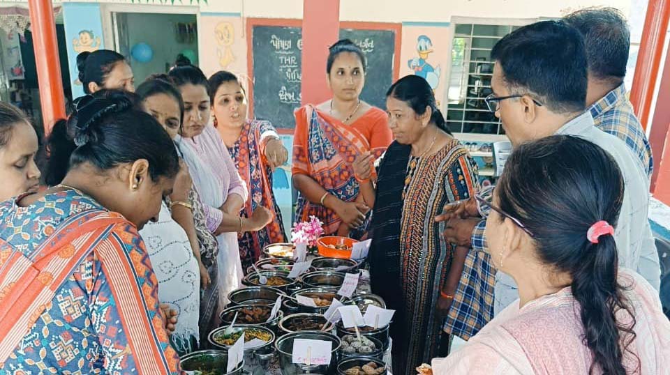 લીલીયા ઘટકના લીલીયામાં સેજા કક્ષાનો વાનગી સ્પર્ધાનો કાર્યક્રમ યોજાયો હતો. આ THR અને મિલેટ્સની વાનગી સ્પર્ધા પ્રાથમિક કન્યાશાળા બી.આર.સી ભવનમાં યોજવામાં આવેલ. જેમાં લીલીયાના સરપંચ જીવનભાઈ વોરા, પ્રાથમિક કન્યાશાળાના આચાર્ય, શિક્ષકો, મુખ્ય સેવિકા પી.ડી. રાઠોડ, એચ.એન. રેણુકા તેમજ આરોગ્ય સ્ટાફ હાજર રહેલ. આ સ્પર્ધામાં આંગણવાડી કાર્યકર બહેનો દ્વારા THR અને મિલેટ્સમાંથી અવનવી સ્વાદિષ્ટ અને પૌષ્ટિક વાનગીઓ બનાવવામાં આવેલ. આ વાનગી સ્પર્ધા દ્વારા લોકોમાં THR અને મિલેટ્સ અંગે