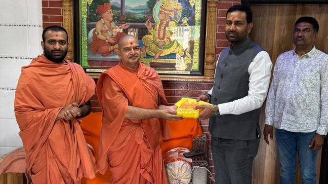 વડીયામાં લગ્નપ્રસંગે હાજરી આપવા આવેલા ઊર્જા, પેટ્રોકેમિકલ્સ અને સંસદિય બાબતોના રાજ્ય કક્ષાના મંત્રી કૌશિકભાઈ વેકરીયાએ સ્થાનિક શ્રી સ્વામિનારાયણ દિવ્યધામમાં દર્શન કરી સંતોના આશીર્વાદ લીધા હતા. આ તકે દિવ્યધામના સંતો- આનંદસ્વરૂપદાસજી, નીલકંઠસ્વરૂપદાસજી અને પ્રેમસ્વરૂપદાસજીએ આશીર્વાદ આપ્યા હતા. મંત્રી કૌશિકભાઈ વેકરીયાની મુલાકાતથી સંતોએ રાજીપો વ્યક્ત કર્યો હતો. આ તકે કૌશિકભાઈ વેકરીયા સાથે જિલ્લા ભાજપ મહામંત્રી મેહુલ ધોરાજીયા, તાલુકા પંચાયત પ્રમુખ પરષોત્તમ હિરપરા, તાલુકા ભાજપ મહામંત્રી શૈલેષ ઠુમ્મર સહિતના લોકો જોડાયા હતા.