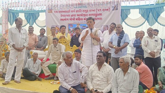 અમરેલી જિલ્લાના સાવરકુંડલામાં સેવા અને ભક્તિનો અદભૂત સંગમ જોવા મળ્યો. જય અલખધણી અને ગોપી મહિલા મંડળ દ્વારા આયોજિત ૫૧ જોડીઓના સમૂહ લગ્નોત્સવનું આયોજન મહંત શ્રી મસાપીર બાપુના માર્ગદર્શનમાં ભવ્યતાથી સંપન્ન થયું. વિજયભાઈ જાનીના શાસ્ત્રોક્ત મંત્રોચ્ચારથી ૫૧ નવદંપતીઓએ ગૃહસ્થાશ્રમમાં પગલા પાડ્યા હતા. મહંતશ્રીના આર્થિક સહયોગ અને આશીર્વાદથી દરેક દીકરીને પલંગ, કબાટ અને ઘરેલું સામાન સહિતનો ભવ્ય કરિયાવર અર્પણ કરાયો. આ પ્રસંગે ૨૦ હજારથી વધુ ભાવિકોએ મહાપ્રસાદ ગ્રહણ કર્યો. સામાજિક જવાબદારી નિભાવતા આયોજનમાં રક્તદાન કેમ્પ પણ યોજાયો, જેમાં યુવાનોએ ઉત્સાહપૂર્વક ભાગ લીધો. દીકરીઓની વિદાય વેળા ભાવુક વાતાવરણ સર્જાયું. સમિતિના સ્વયંસેવકોએ દિવસ-રાત મહેનત કરી આ કાર્યક્રમને સફળ બનાવ્યો હતો.