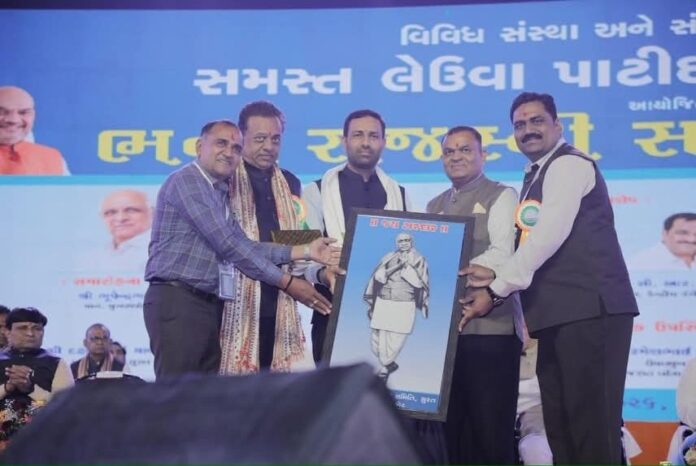 લેઉવા પાટીદાર સમાજ દ્વારા વિવિધ સંસ્થાઓના સહયોગથી સુરત ખાતે ભવ્ય રાજસ્વી સન્માન સમારોહનું આયોજન કરવામાં આવ્યું હતું. આ કાર્યક્રમમાં મુખ્યમંત્રી ભુપેન્દ્રભાઈ પટેલ, ઉપમુખ્યમંત્રી હર્ષભાઈ સંઘવી, કેન્દ્રીય મંત્રી મનસુખભાઈ માંડવીયા અને પ્રદેશ અધ્યક્ષ સી.આર. પાટીલ, કૃષિ મંત્રી જીતુભાઇ વાઘાણી, કાયદા અને ઊર્જા મંત્રી કૌશિકભાઈ વેકરીયા, નાણાં મંત્રી કમલેશભાઈ પટેલનું સન્માન કરાયું હતું. આ ઉપરાંત હિરેનભાઈ હિરપરા સહિત ધારાસભ્યો અને સમાજના અગ્રણીઓની મોટી સંખ્યામાં ઉપÂસ્થત રહ્યા હતા. આ અવસરે, અમરેલીના ગૌરવ સમા મંત્રી કૌશિકભાઈ વેકરીયાનું સરસીયા ગામ પટેલ પરિવાર સુરત વતી પ્રમુખ જીતુભાઇ શેલડીયા, કાર્યકારી પ્રમુખ મહેશભાઈ નાકરાણી અને યુવાનો અશ્વિન ઠુંમર, જીગ્નેશ માયાણી, રાહુલ અકબરી, અલ્પેશ મોણપરા, અને દલસુખભાઈ શેલડીયાએ સન્માન કર્યું હતું.