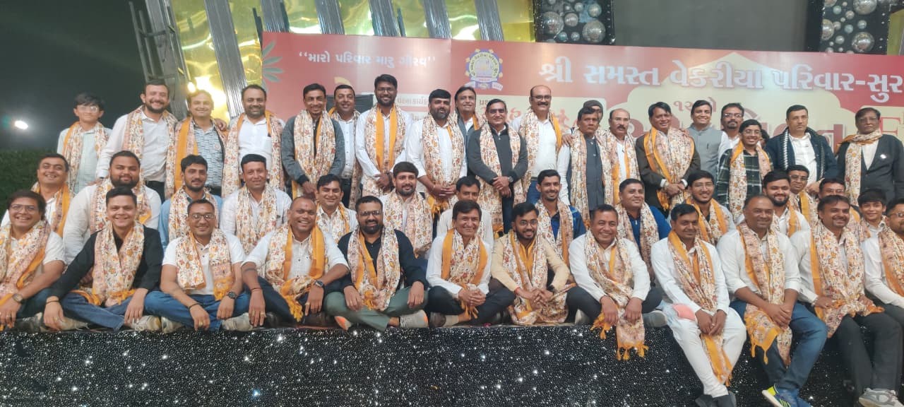 સુરત ખાતે સમસ્ત વેકરીયા પરિવારનું ૧૨મું સ્નેહમિલન ભવ્ય માહોલમાં યોજાયું હતું. રાજ્યના મંત્રી કૌશિકભાઇ વેકરીયા અને અંજુબેન વેકરીયા મુખ્ય મહેમાન તરીકે ઉપસ્થિત રહ્યા હતા. સમગ્ર ગુજરાતમાંથી ૭૫૦૦થી વધુ પરિવારજનો એકઠા થયા હતા, જે પરિવારની એકતાની મિસાલ છે. આ સ્નેહમિલનમાં સમાજસેવાના ઉત્તમ ઉદાહરણરૂપે આઠ યુગલોના સમૂહલગ્ન, ૧૫૧ યુનિટ રક્તસંગ્રહ સાથે બ્લડ ડોનેશન કેમ્પ, ઓર્ગન ડોનેશન સંકલ્પ, હેલ્થ ચેકઅપ અને બિઝનેસ એક્સ્પોનું આયોજન થયું હતું. વિદ્યાર્થી સન્માન, વડીલ સન્માન અને ઈનામ વિતરણ પણ કરાયું હતું. કાર્યક્રમનો મુખ્ય ઉદ્દેશ પરિવારજનોને એકબીજાના વ્યવહારોથી નજીક લાવવાનો અને બાળકોમાં સંસ્કાર, અભ્યાસ તેમજ રાષ્ટ્રસેવાના બીજનું રોપણ કરવાનો હતો. દીપપ્રાગટ્ય બાદ પ્રકાશકુમાર વેકરીયા દ્વારા મહા શંખનાદ સાથે ભારતીય સંસ્કૃતિ અનુસાર કાર્યક્રમનો પ્રારંભ થયો. લાખોની રકમનું દાન અને સમાજહિતના કાર્યો માટે શપથ લેવાયા. કાર્યક્રમ પૂર્ણ થયા બાદ સામૂહિક ભોજન અને ભવ્ય લોકડાયરાનું આયોજન કરવામાં આવ્યું હતું.