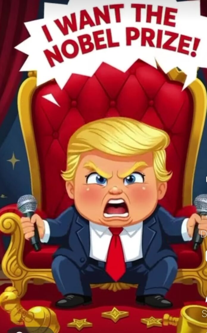 ‘‘૧૨૪ વર્ષ પહેલાં શરું થયેલો વિશ્વનો સૌથી પ્રતિષ્ઠિત પુરસ્કાર ’’નોબેલ શાંતિ પુરસ્કાર” જે આ વર્ષે વેનેઝુએલાની મારિયાને મળ્યો છે. એ પુરસ્કાર અમેરિકાના માથાં ફરેલાં ડોનાલ્ડ ટ્રમ્પને મળે.’’