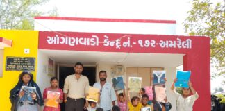 અમરેલીના આંગણવાડી કેન્દ્ર ટેલીફોન ક્વાર્ટર નં.૧૭રમાં વસ્ત્રદાન કરાયુ
