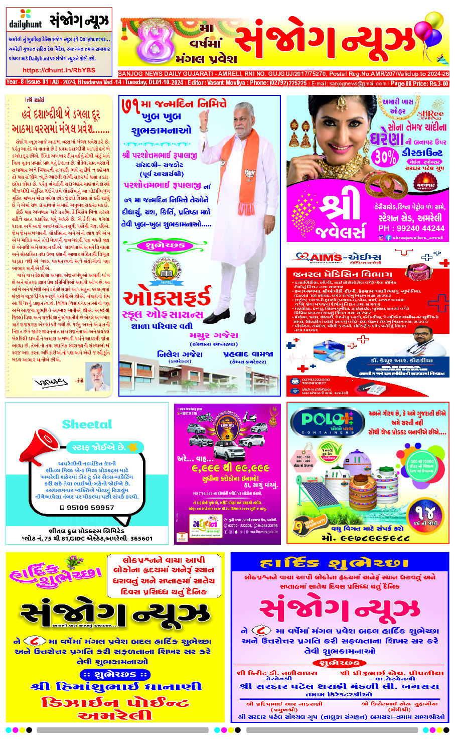Home ઇપેપેર E-PAPER 01/10/2024 ઇપેપેર E-PAPER 01/10/2024 By Sanjog News - 01/10/2024 RELATED ARTICLESMORE FROM AUTHOR E- PAPER 27-02-2026 E-paper 26-02-2026 E- PAPER 25-02-2026 E -PAPER 24-02-2026 E-paper 22-02-2026 E- PAPER 21-02-2026 E – PAPER 20-02-2026 E- PAPER 19-02-2026 E-PAPER 18-02-2026 E-paper 17-02-2026 E- PAPER 16-02-2026 E-paper 15-02-2026 ભારત મંડપમ ખાતે શર્ટલેસ વિરોધ પ્રદર્શનને લઇને ગઠબંધન ભાગીદારોએ પણ ટીકા... 23/02/2026 શાહરૂખ ખાન સલમાન ખાનના પિતા સલીમ ખાનને જોવા લીલાવતી હોસ્પિટલની મુલાકાતે 22/02/2026 મોદી કેબિનેટે સેવા તીર્થ ખાતે તેની પ્રથમ બેઠકમાં કેરળનું નામ બદલીને... 24/02/2026 અમેરિકાના રાષ્ટ્રપતિ ડોનાલ્ડ ટ્રમ્પ પોતાની હત્યાથી ડરી રહ્યા છે ! 25/02/2026 ધારીના ખોડિયાર ડેમમાં પ્રવાસીઓ માટે બોટિંગની સુવિધા કરવા માગણી 24/02/2026 રાજુ કરપડાએ કોંગ્રેસના નેતા અમિત ચાવડા, લાલજી દેસાઈ અને પાલ આંબલિયાને... 21/02/2026 સોનાના ભાવમાં વધારો વૈશ્વિક સ્તરે કેન્દ્રીય બેંકો દ્વારા નોંધપાત્ર ખરીદીને કારણે,... 23/02/2026 સાબરકાંઠામાં જેણે જીવન આપ્યું તેના જ શ્વાસ છીનવી લીધા, બોથડ પદાર્થ... 25/02/2026 આખું જંગલેશ્વર પોલીસ છાવણીમાં ફેરવાયું! લોકોએ પોતાના મકાનો જાતે જ પાડવાના... 21/02/2026 સરકારના લગ્ન નોંધણી અધિનિયમમાં સુધારા નિર્ણયને આવકારતા હિરેન હિરપરા 23/02/2026